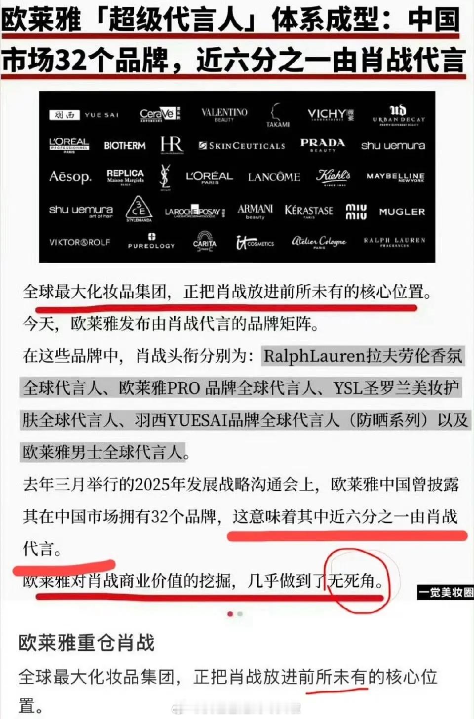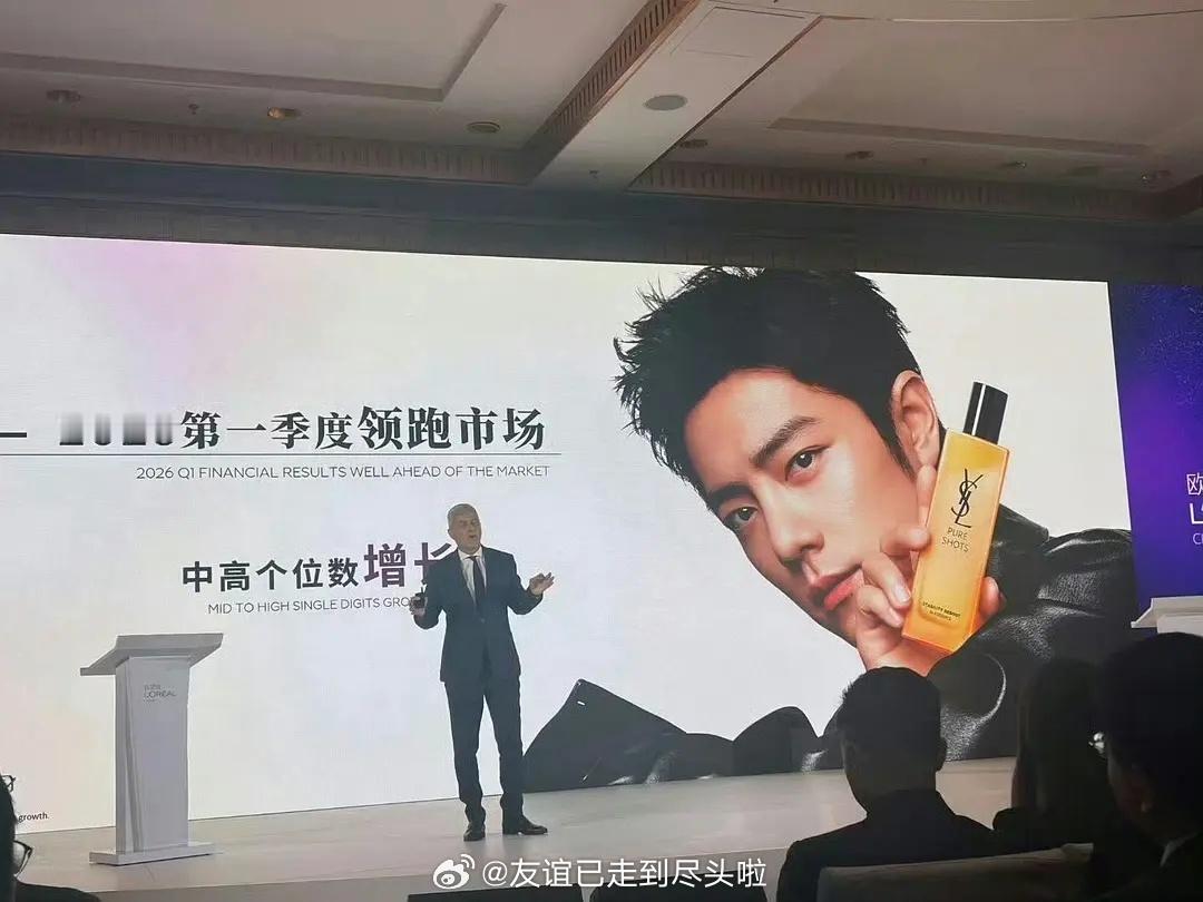 欧莱雅集团报告中2026第一季度领跑市场页面直接放了肖战商务图!超强号召力和商业