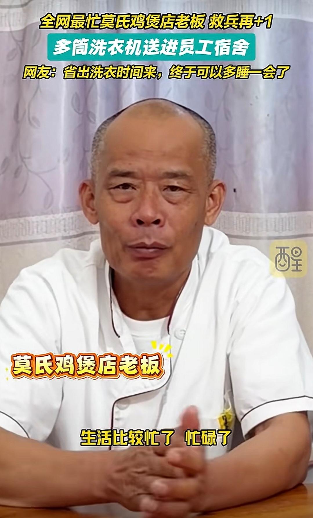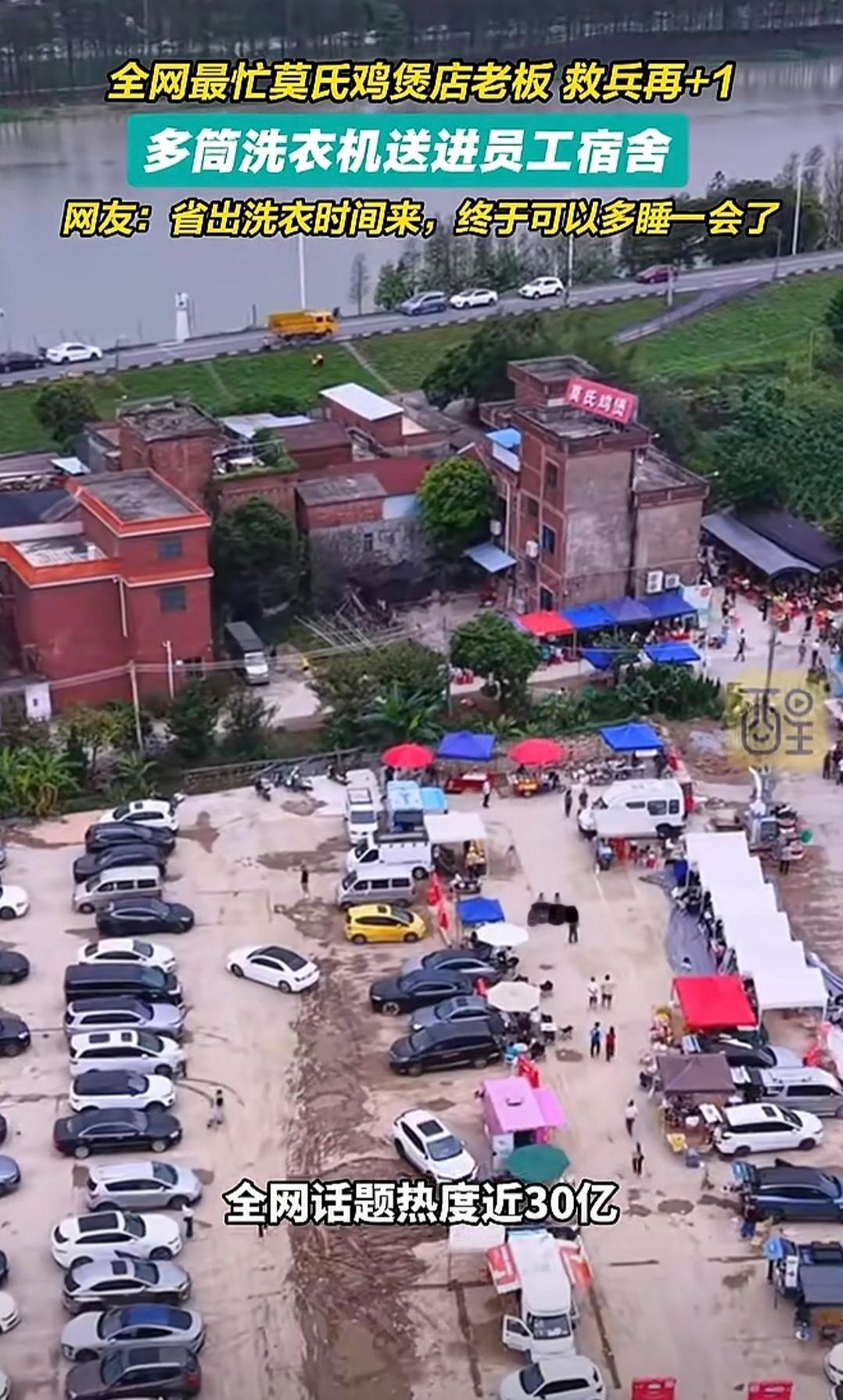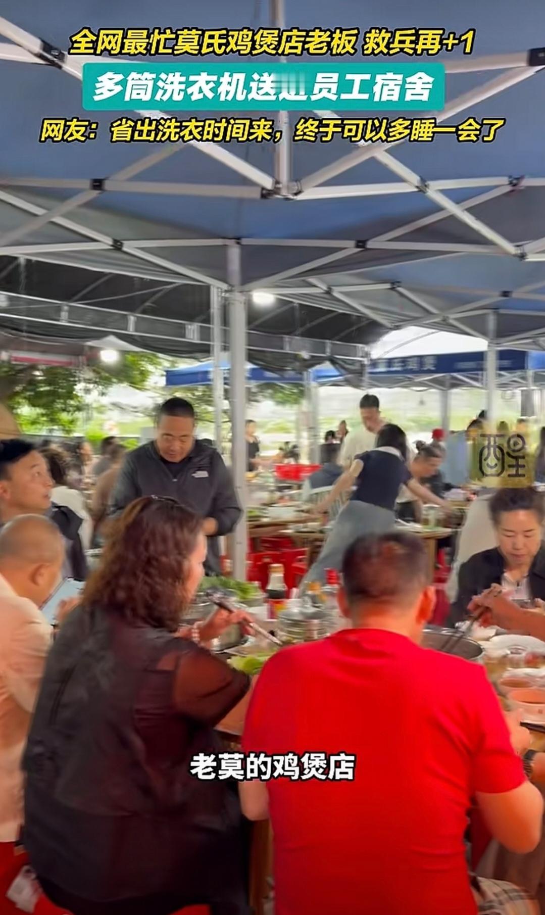 莫氏鸡煲全网最忙!村里的停车场都停满了车,客人排队就为了一口莫氏鸡煲,如今为了让员工多点时间休息,老莫叔给员工配备洗衣机,这样员工洗衣服方便了,多点时间休息。太不容易了,当网红也累,老莫叔也算是不错,很是照顾员工,这五一说不定更忙!