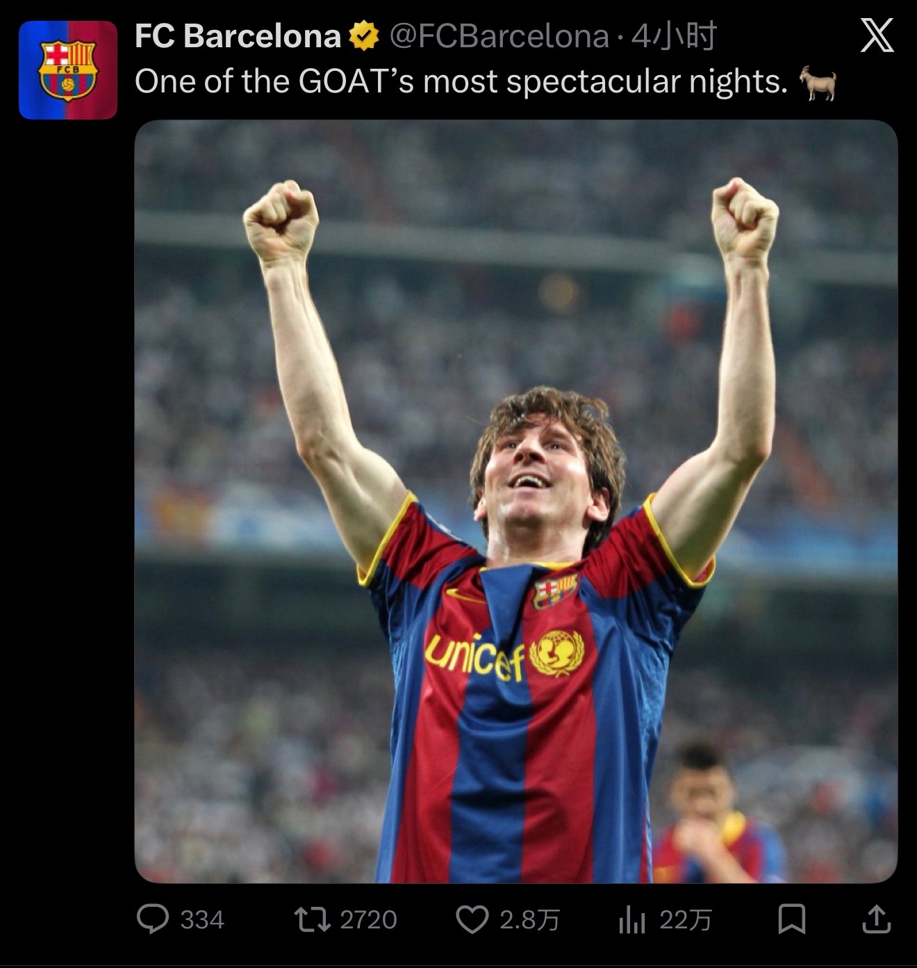 巴萨官推:这位史上最伟大球员最精彩夜晚之一🐐