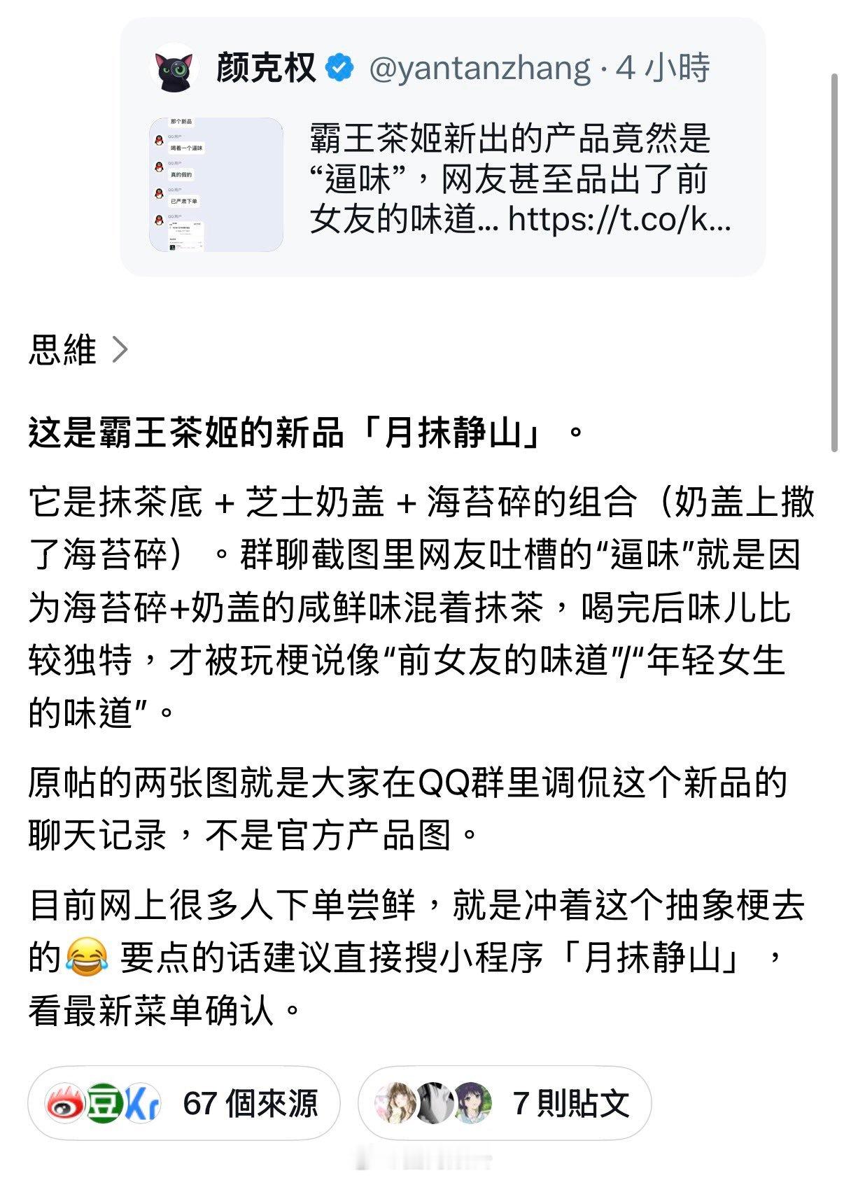 🍉霸王茶姬新出的产品竟然是“逼味”,网友甚至品出了前女友的味道...…… 好低
