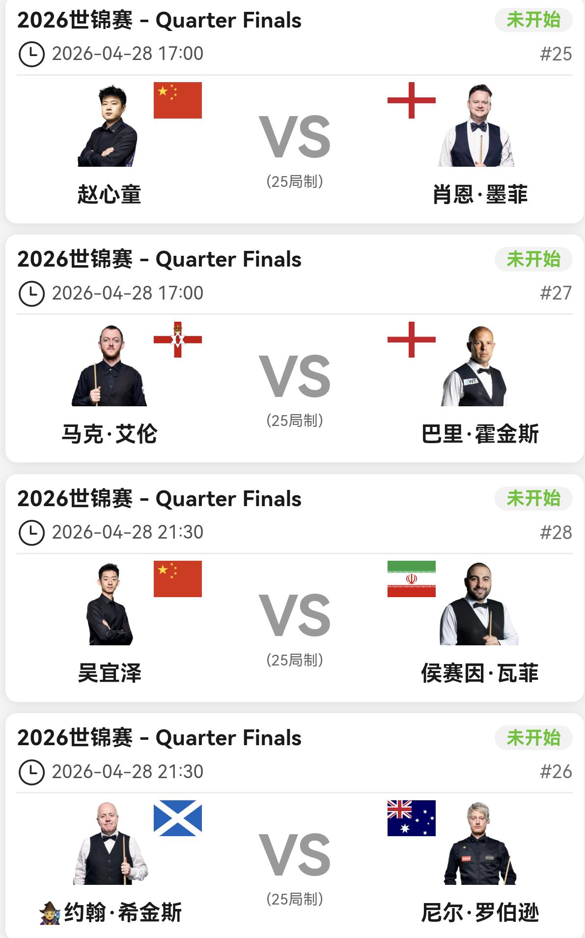 上半区的全是世界冠军,赵心童、希金斯、罗伯逊、墨菲。