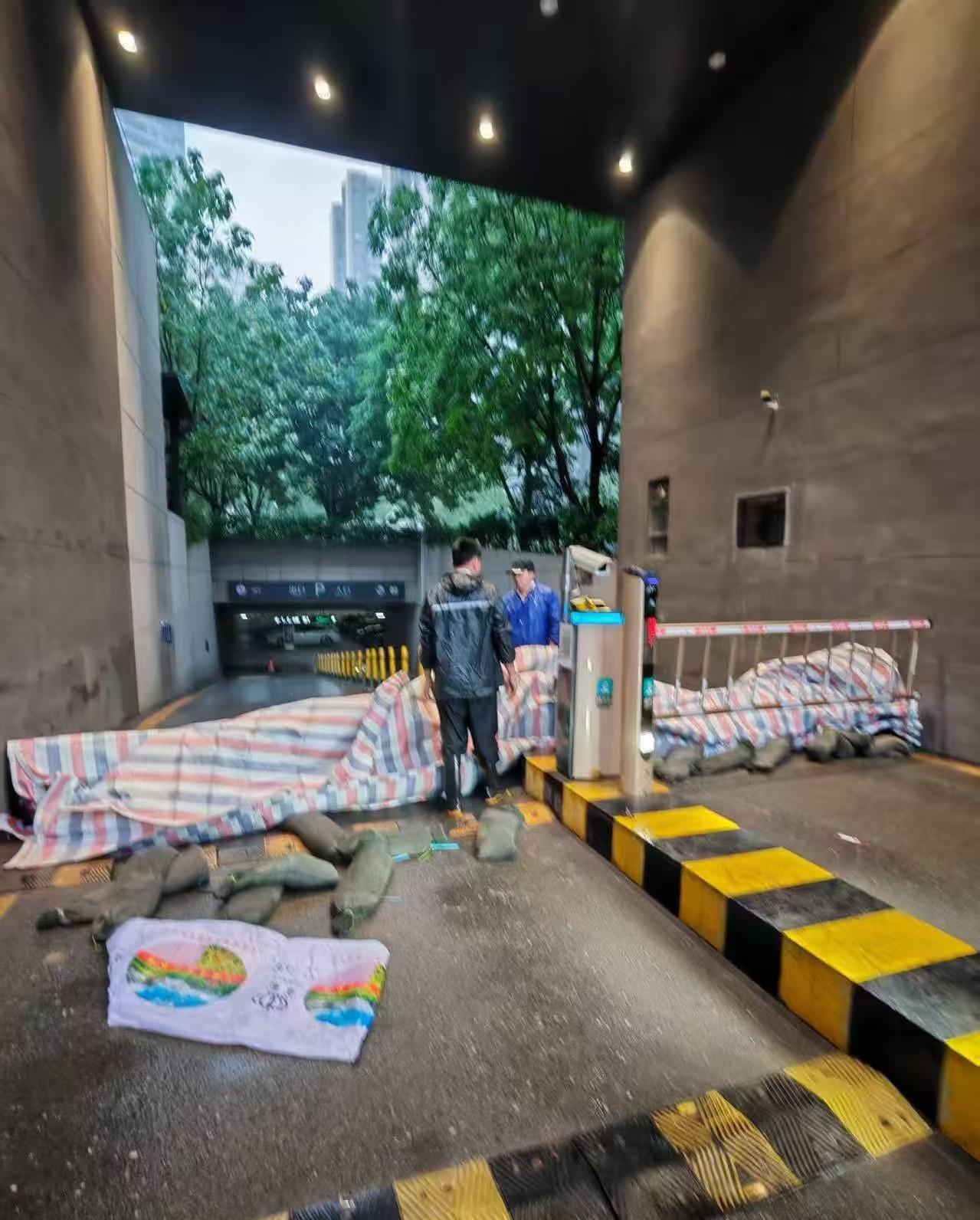 从他们晒出的小区物业事先做的保护措施的图片来看,搞这么几个沙袋就能挡住外面的涛涛大水了,我真的很难想象?