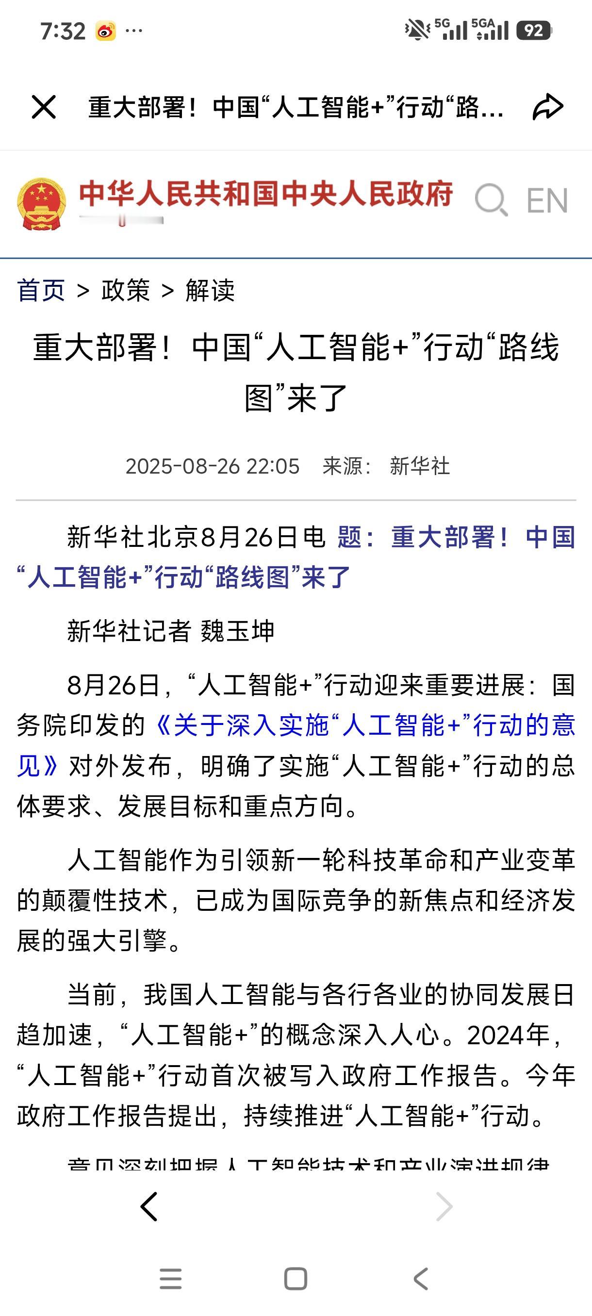 国务院重磅发文(国发〔2025〕11号),全面部署“人工智能+”全民普及,明确: