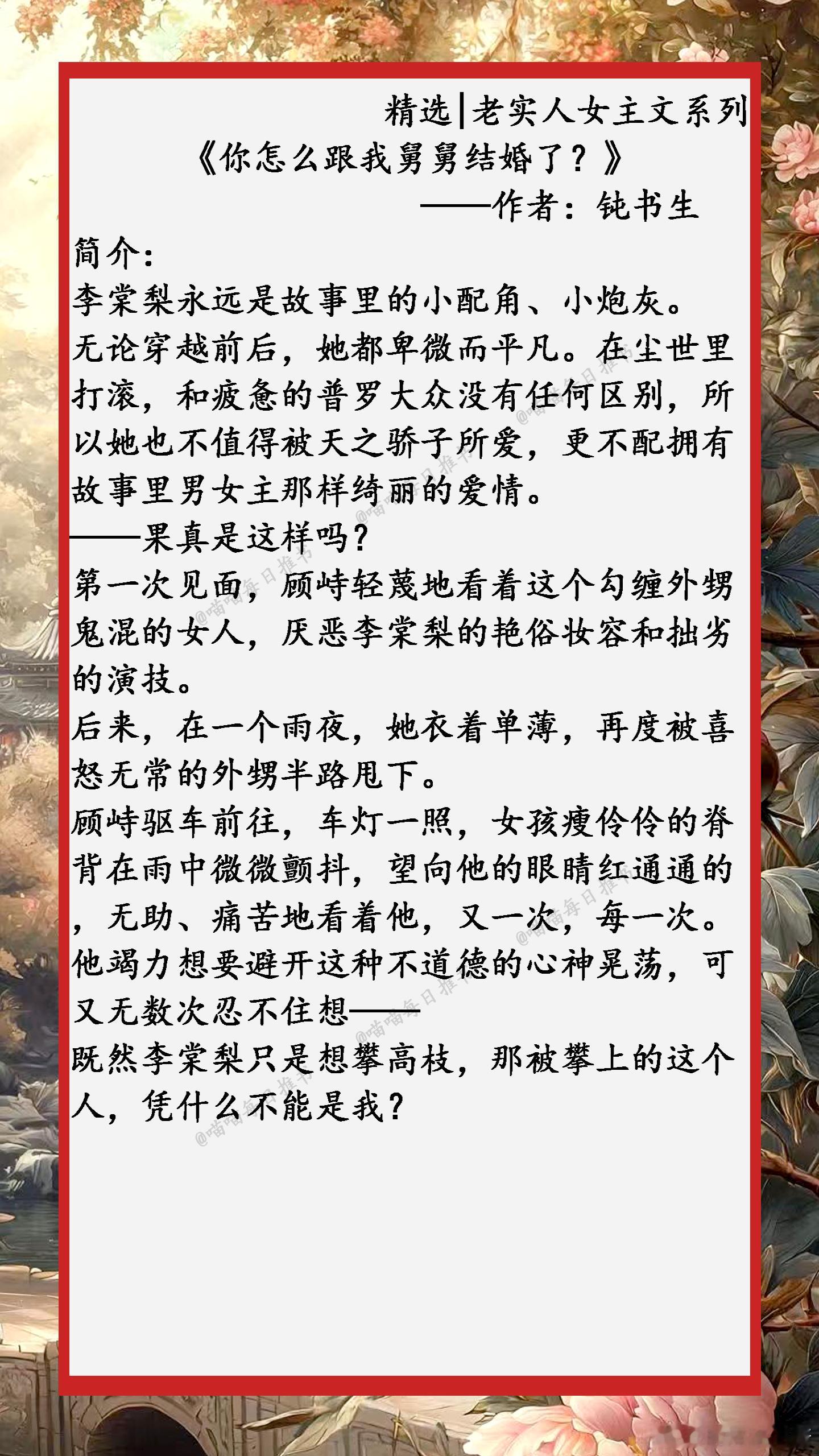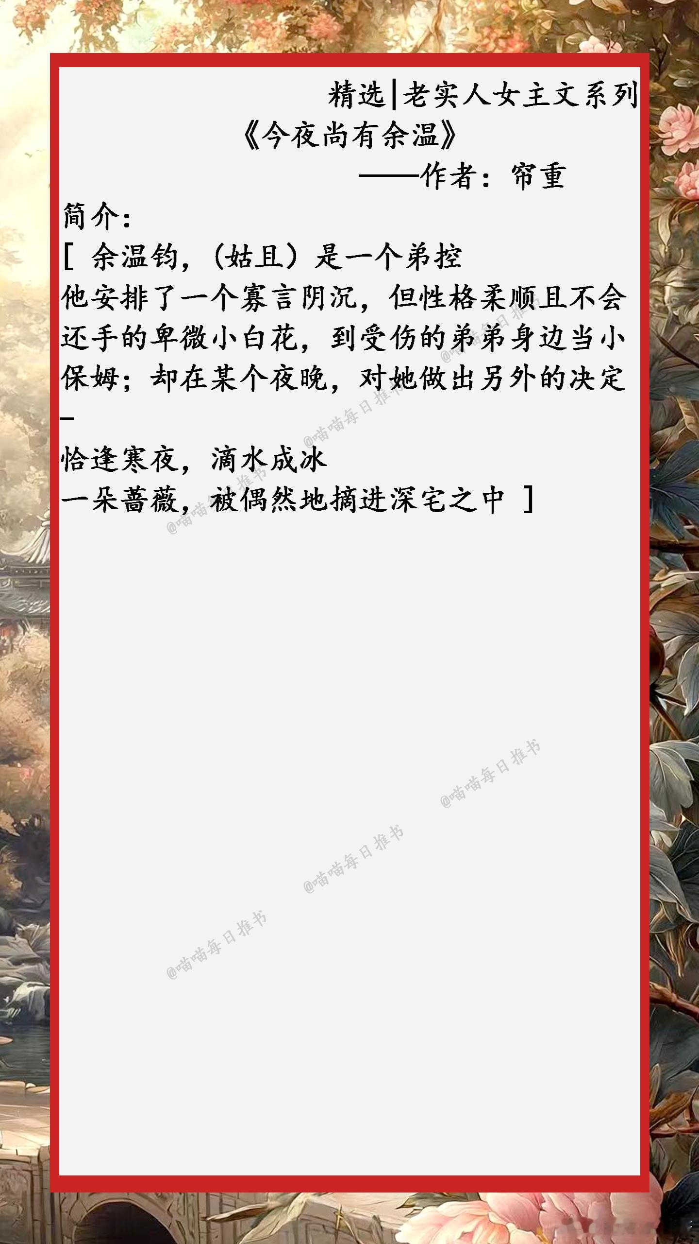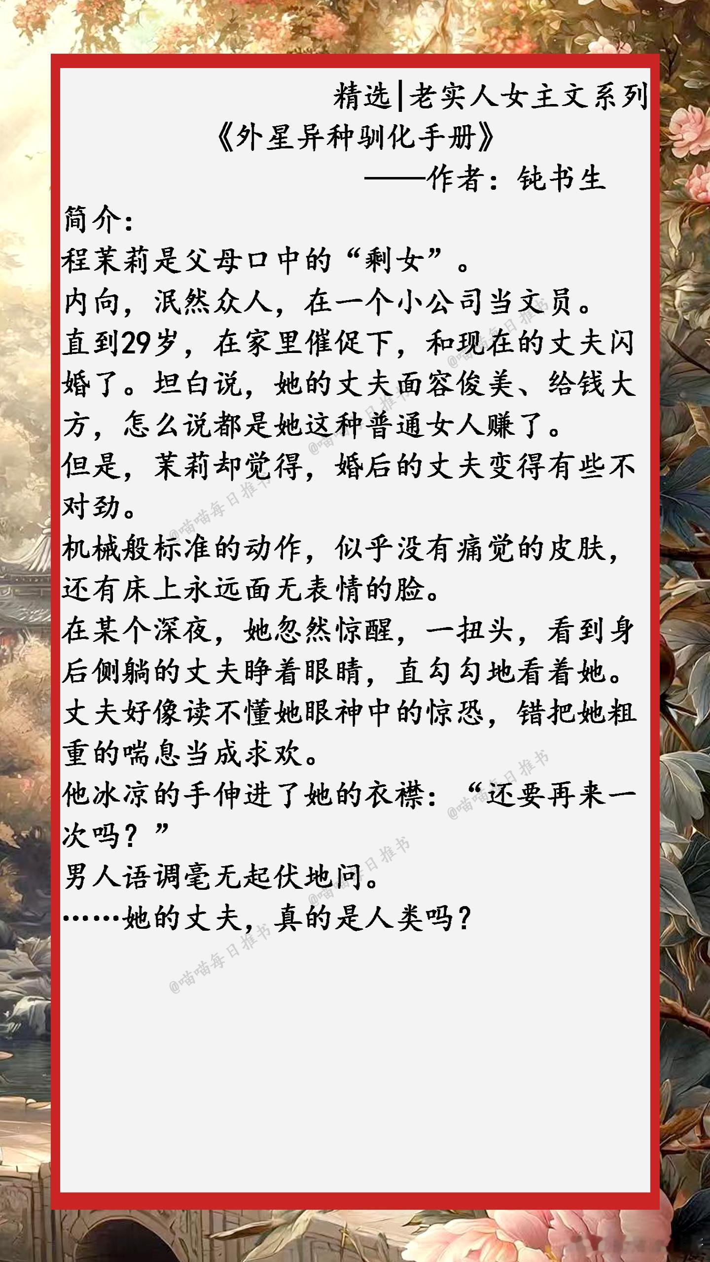 精选【老实人女主文】系列合集:心动的感觉,是胃里飞舞着一千只蝴蝶......好看的小说小说推文 1、《怀上权臣男主的崽》——作者:草灯大人2、《外星异种驯化手册》——作者:钝书生3、《循环热恋》——作者:礼也4、《迷魂阵》——作者:锦葵紫5、《好眠金鱼》——作者:吃一首诗6、《今夜尚有余温》——作者:帘重7、《你怎么跟我舅舅结婚了?》——作者:钝书生8、《秋色到空闺》——作者:何双成9、《兄友之妻》——作者:画青回