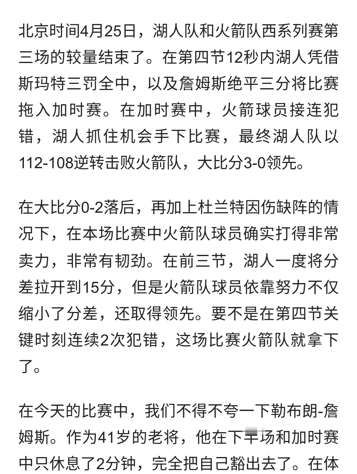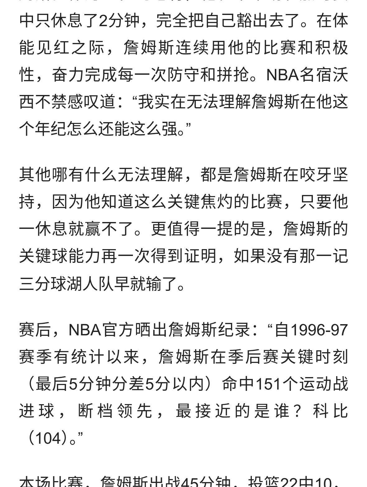 关键时刻力压科比!传来詹姆斯最新消息,申京:湖人别高兴太早