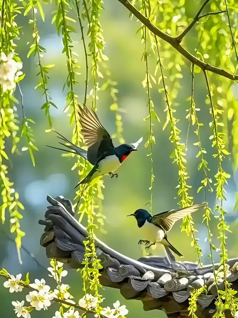上联:雨歇天晴百花艳, 下联:风轻云淡群鸟鸣。