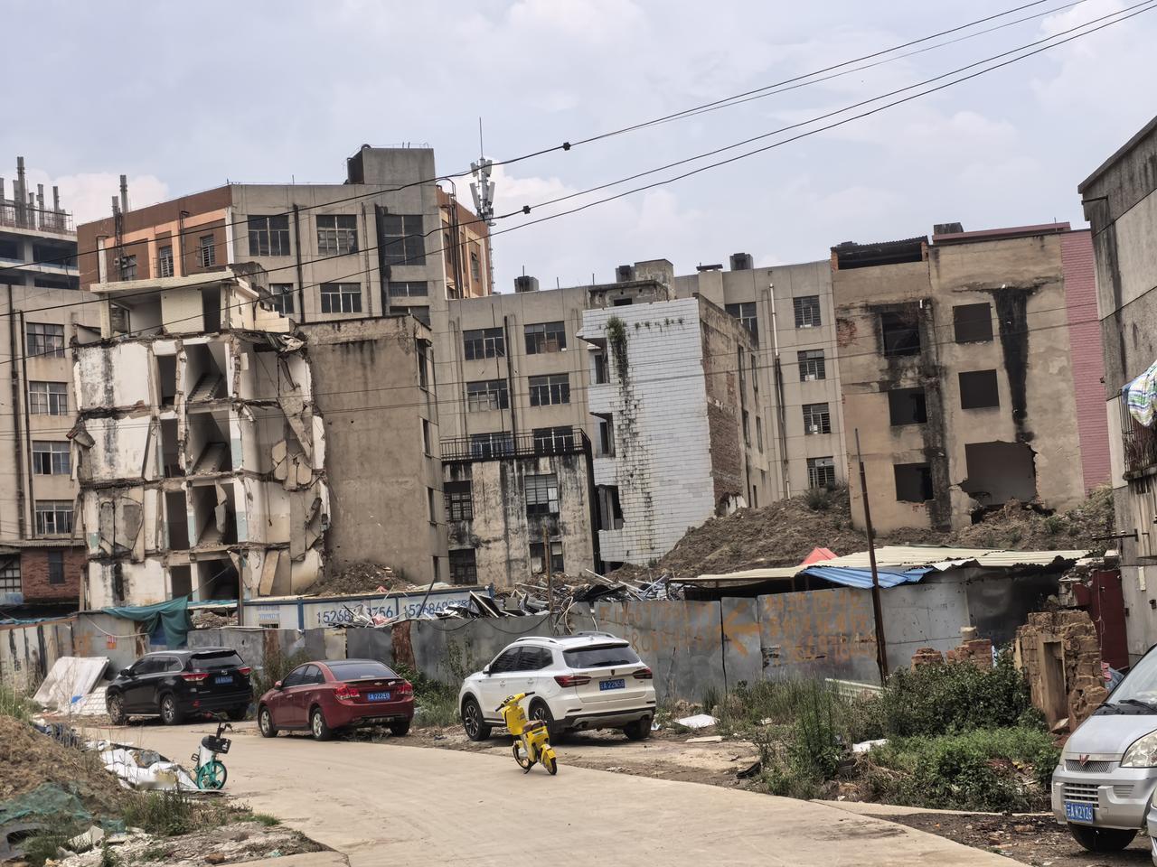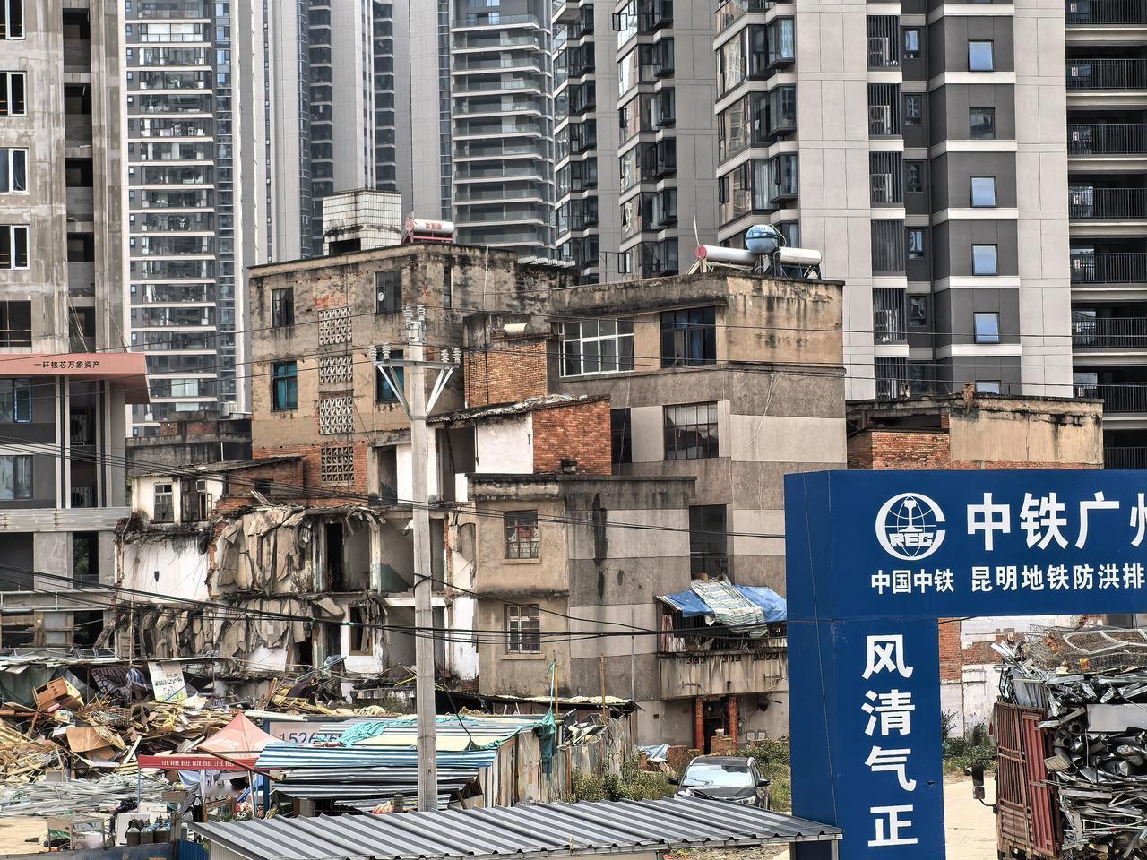 现在看看,这个万象城后面的现象,还有一小部分人住里面,大部分都搬走,里面根战争过后的叙利亚风格一样,谁都没有办法,不怪这些国央企离开昆明,人家真的是无法操作,无法开展工作,就是一千亩,五百亩,有一户在,都不好开展工作。又不是二十年前,又不能强拆,人家就不搬。