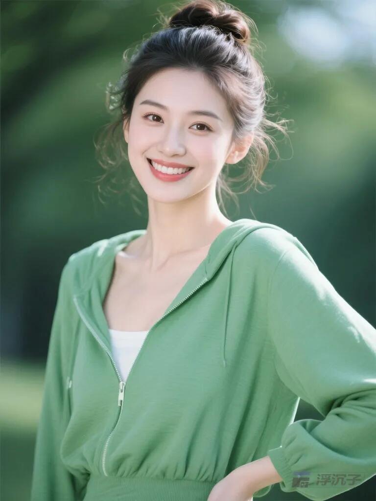 题晴日健身晴光漫染运动场,健步轻扬笑靥香。一身暖褐裁春意,不借铅华自飒爽