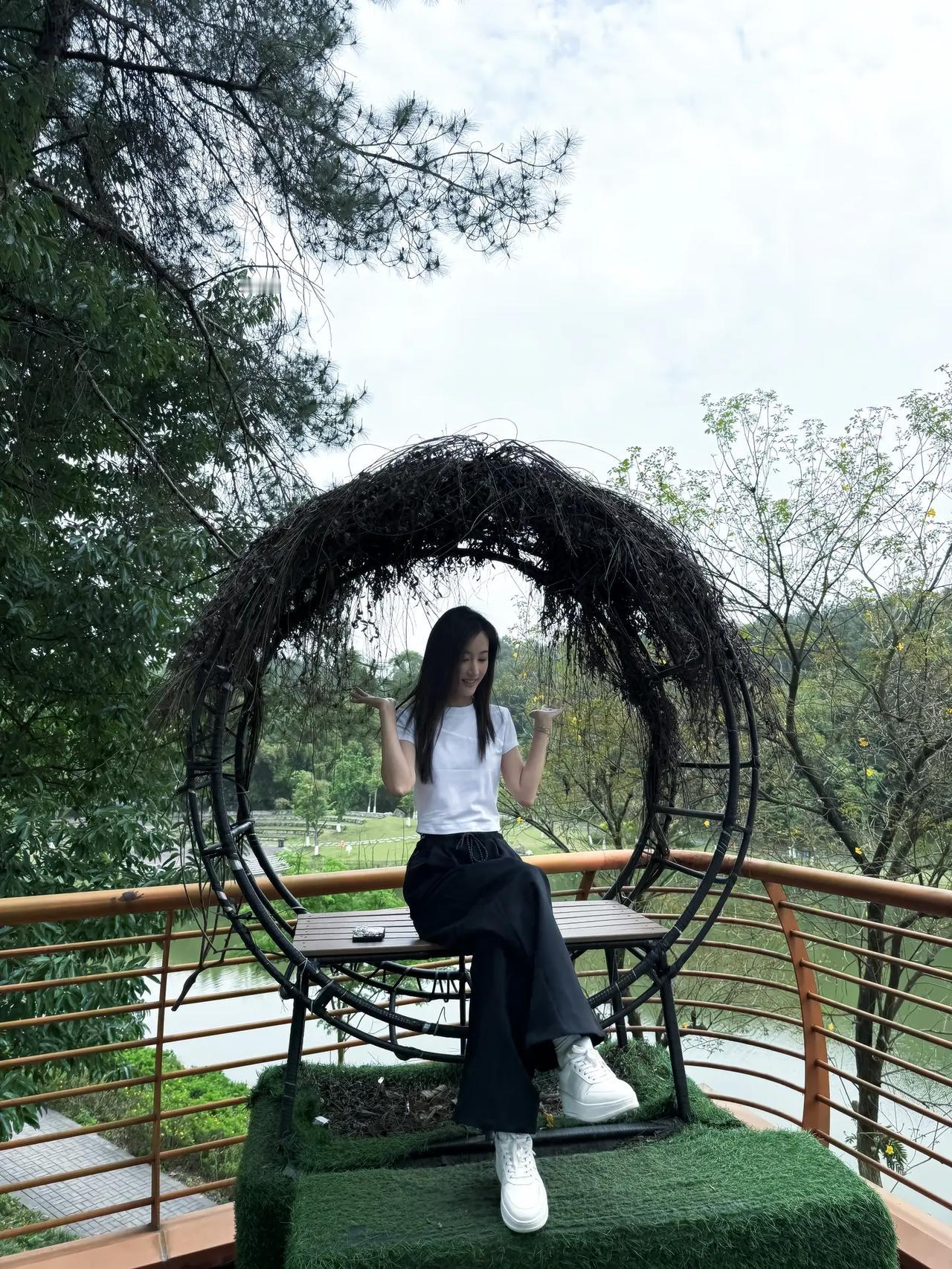 绿树掩映下,美人倚栏思。