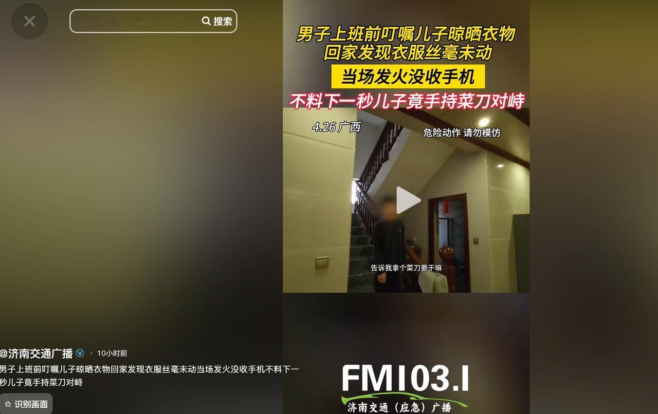 (信息来源:《男子上班前叮嘱儿子晾晒衣物,回家发现衣服丝毫未动,当场发火没收手机》观象视频)