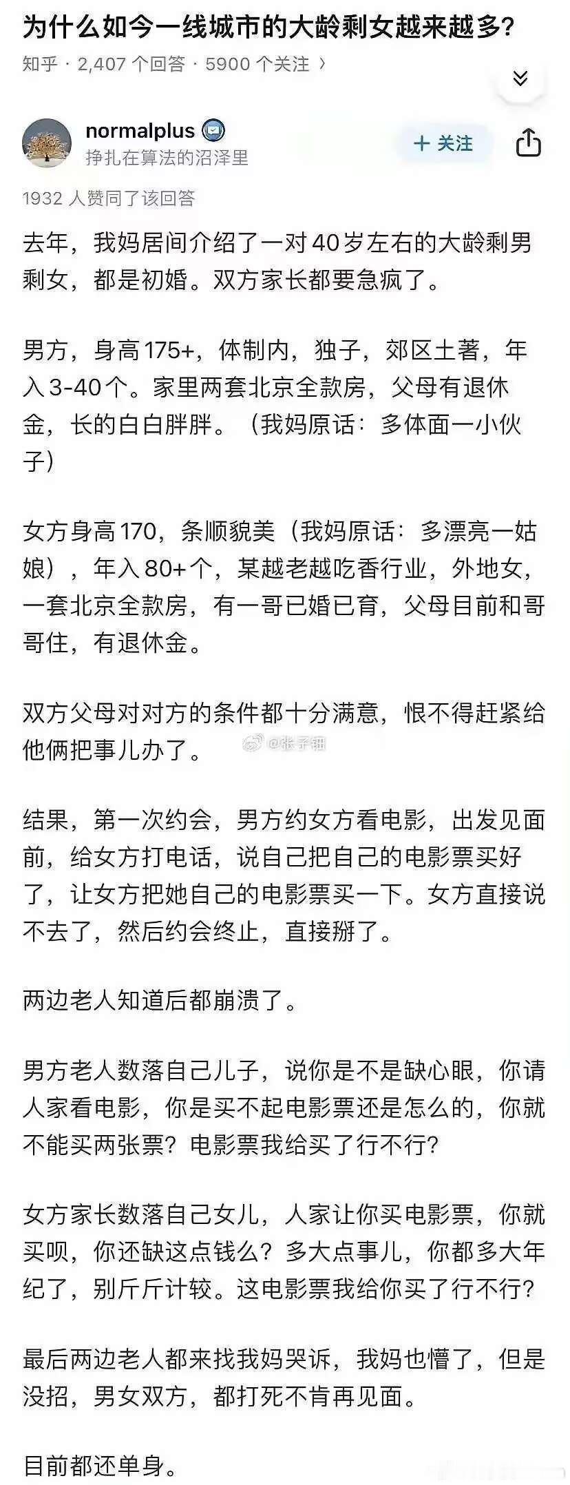 年龄40+年入30+的哥们还没结婚大概率是有问题的。女的就不说了,毫无例外全部有问题。