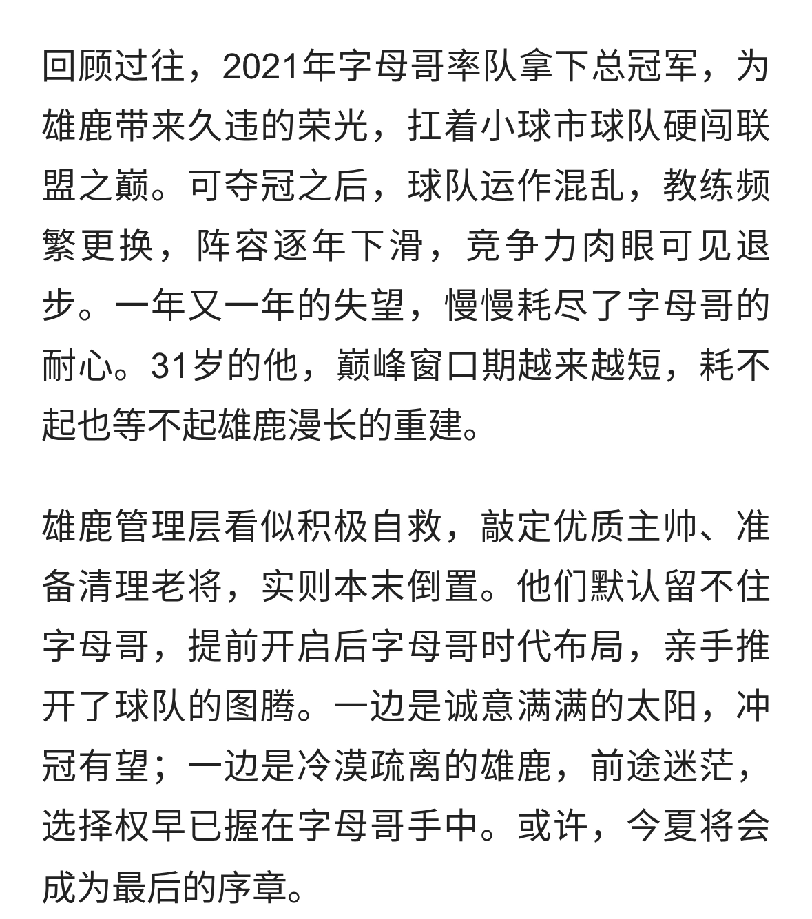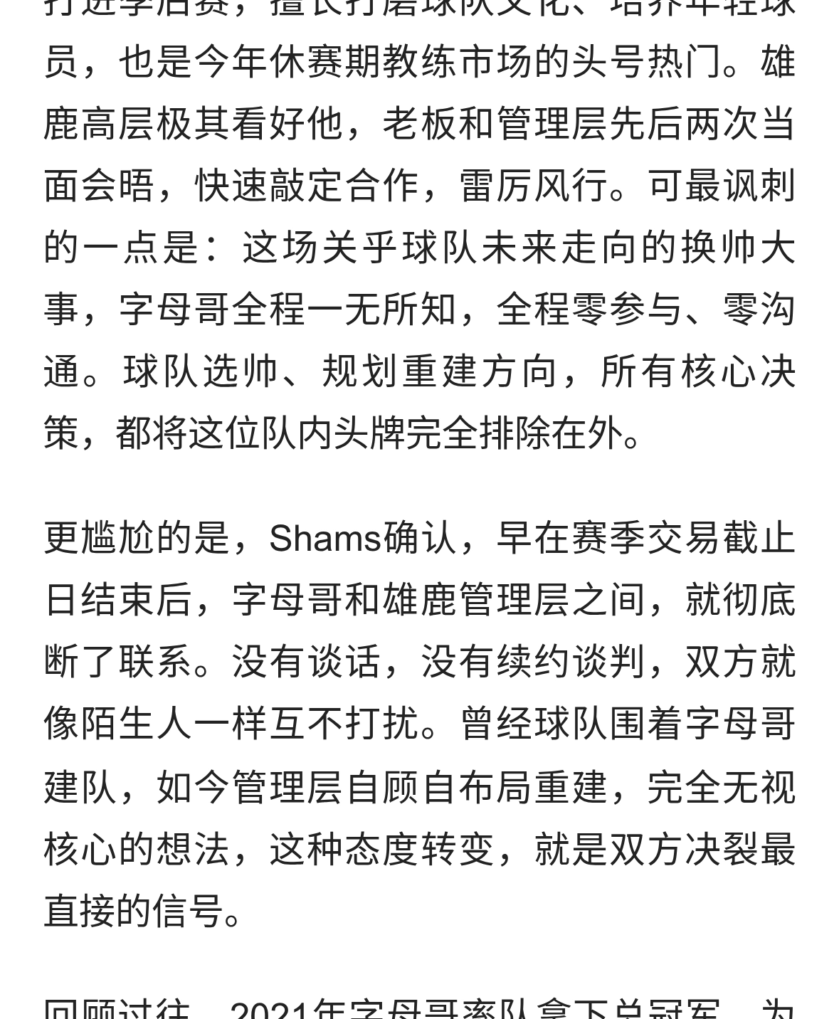 离谱!雄鹿换帅无视字母哥,双方彻底闹掰,太阳坐等捡漏?