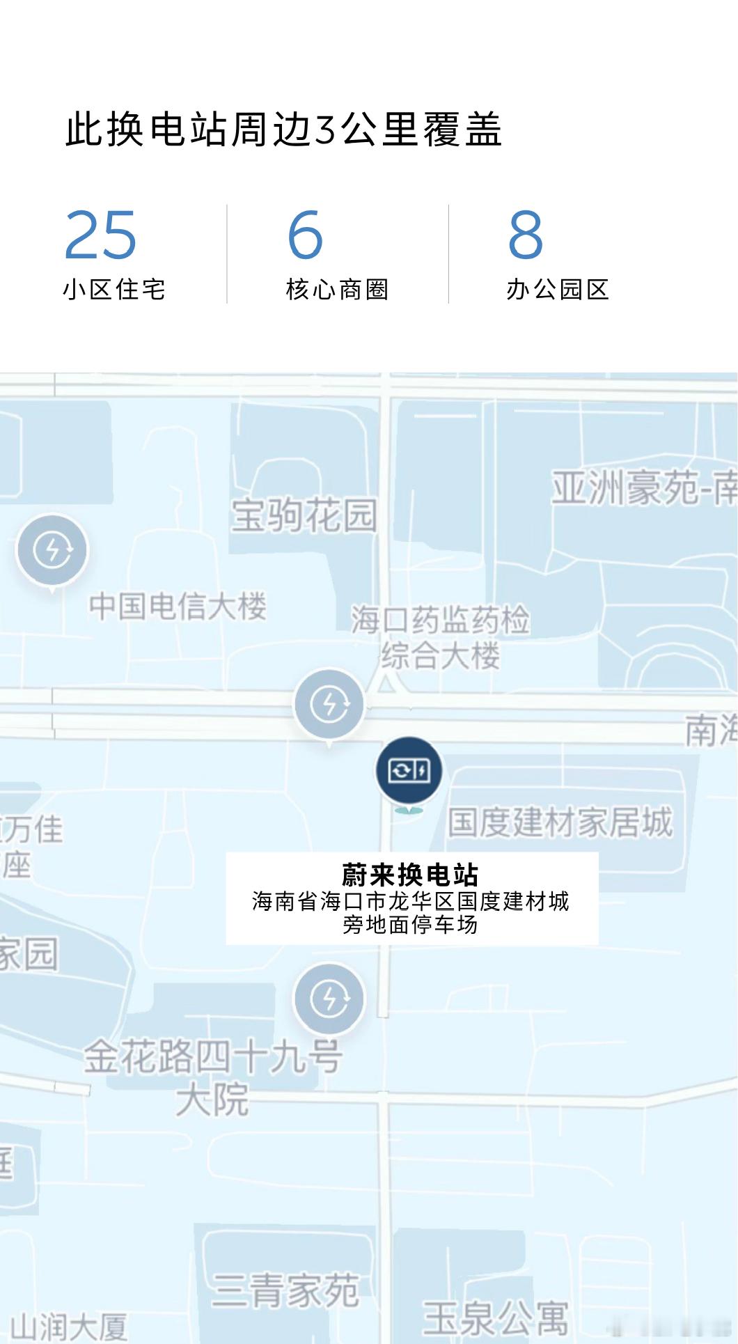 换电站是电动车的加油站蔚来换电站 |海口金巷路 上线周边3公里覆盖25大小区住宅、6大核心商圈、8大办公园区截至4月28日,蔚来已在海南省布局16座换电站