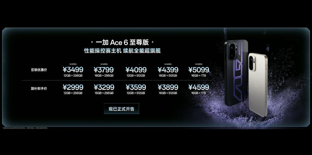 一加Ace 6至尊版发布,号称从内里到外全方位进化,并且这次终于“聪明”了,来了个首销价,限时3499元起。不过大内存顶配真的挺贵,优惠价也去到5099元了。