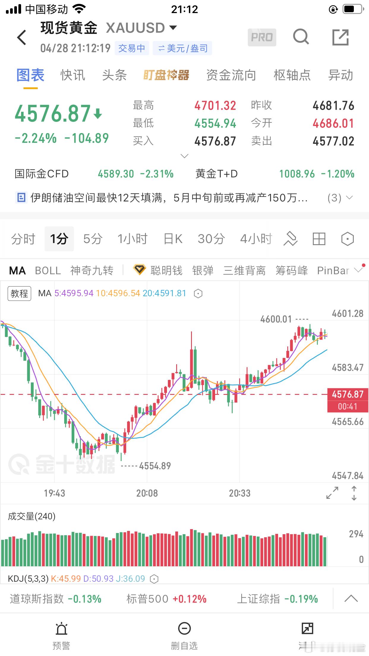 哎,真是没想到,黄金继续下跌。现货黄金已经跌破4650关口啦。刚看了一下