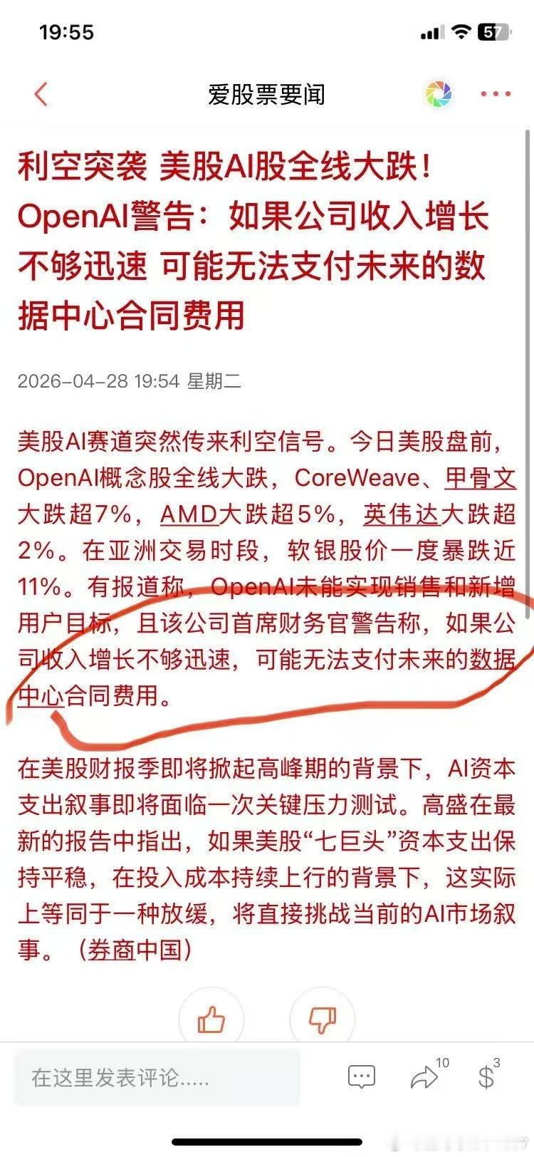利空突袭 美股AI股全线大跌!OpenAl警告:如果公司收入增长不够迅速 可能无法支付未来的数据中心合同费用