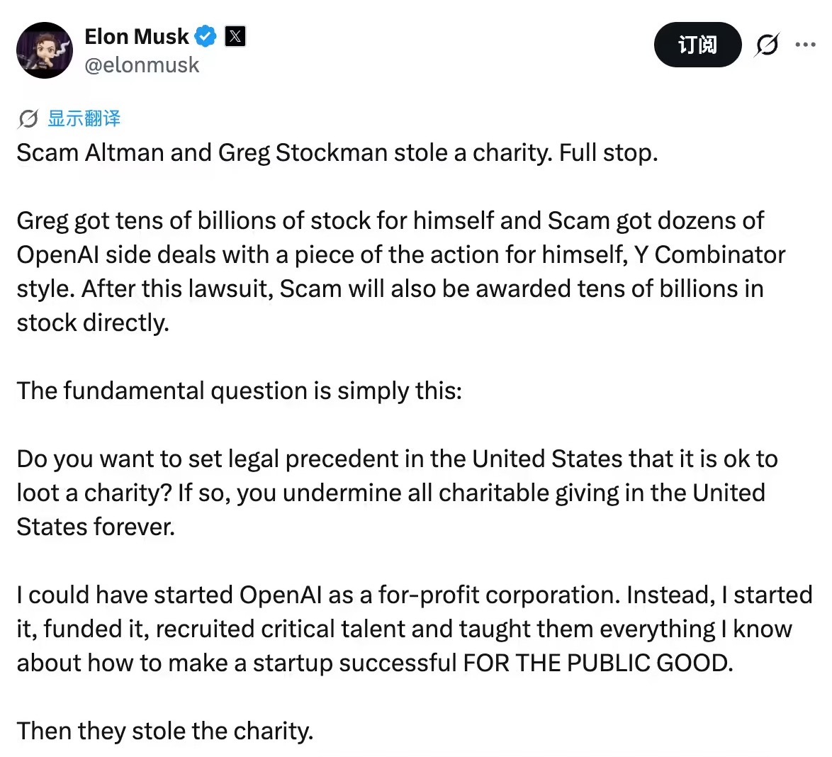 马斯克:你俩偷走公益机构,偷偷私有化捞钱。靠着各种暗箱操作、关联交易,狂揽几百亿私利,吃相太难看。