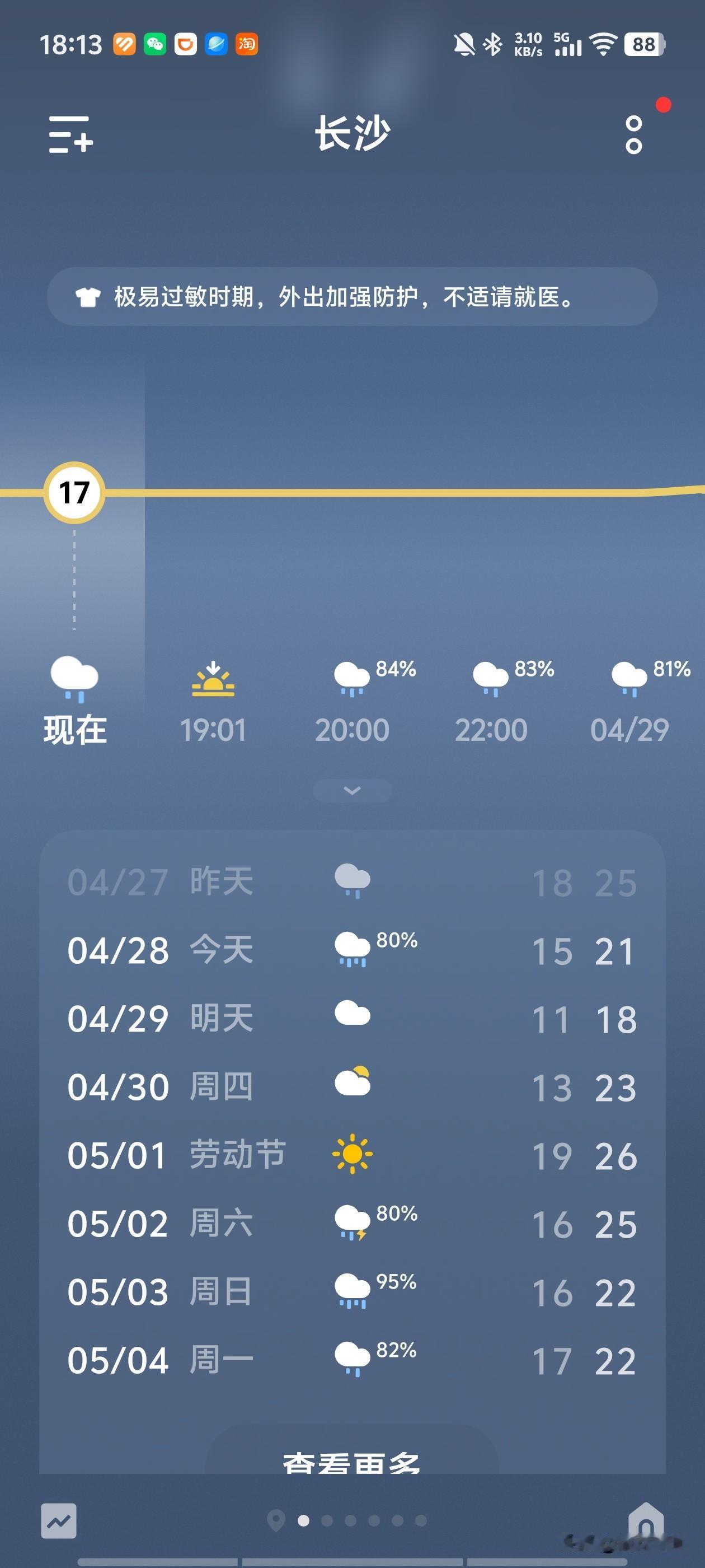 天气预报显示明天雨停,多云。后天放晴。无比期待。