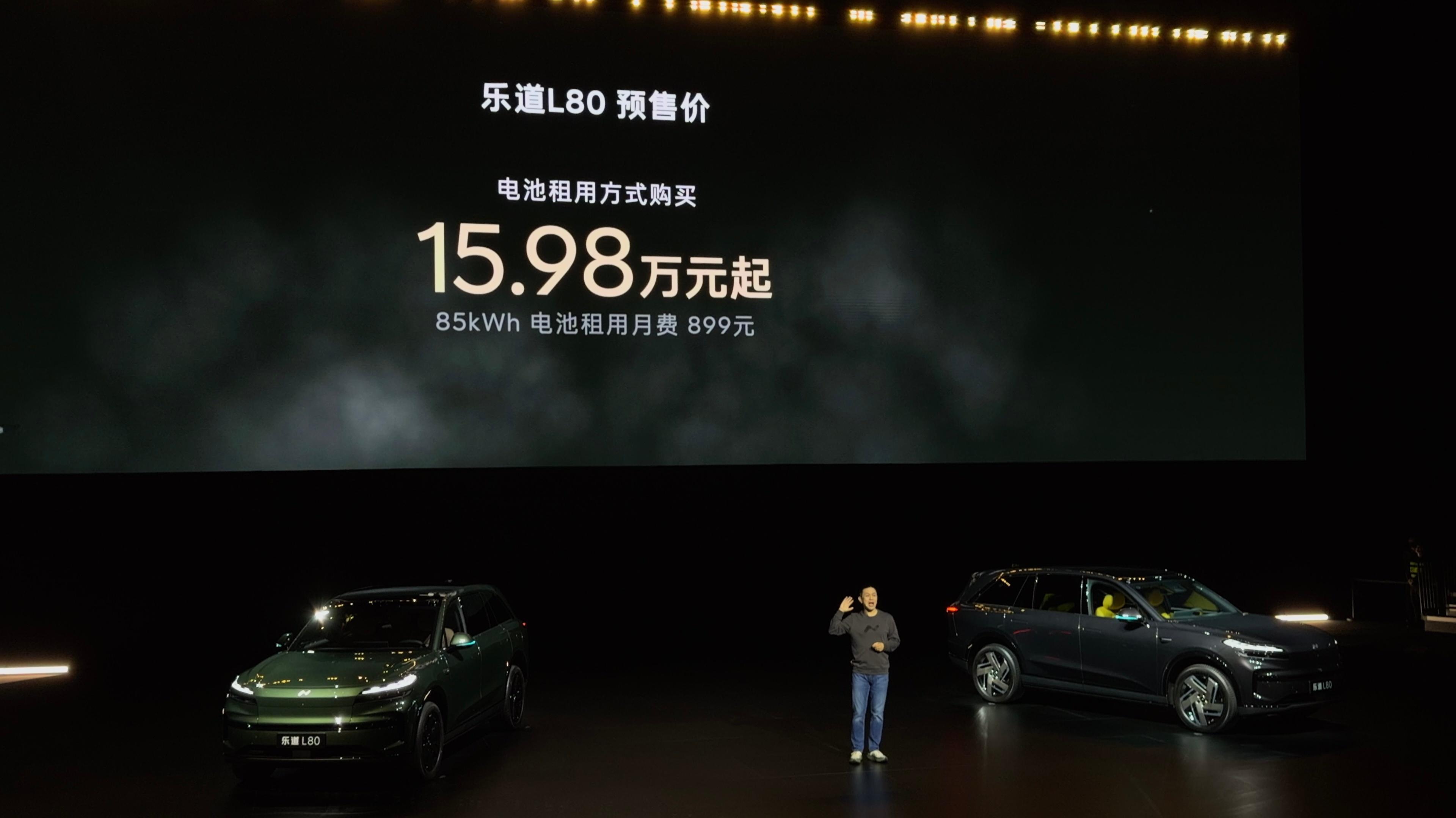 大五座SUV乐道L80开启预售整车购买24.58万元起BaaS电池租用方式购买15.98万元起。目前展车已经到店可供体验。新车将于5月15日正式上市,估摸着价格还能再有点优惠的空间?中国大五座SUV空间奇迹乐道汽车 杭州·中国杭州电竞中心