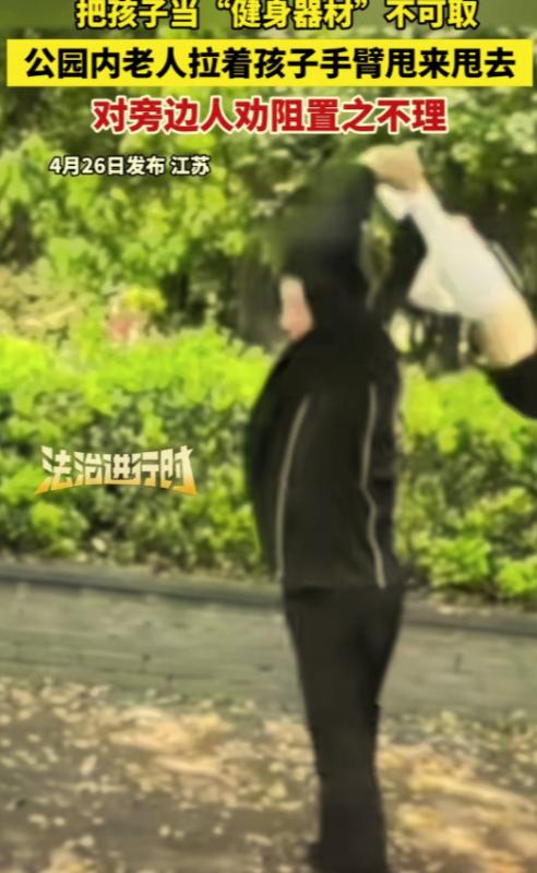 2026 年 4 月 26 日江苏一处公共公园内,一名年长老人不顾孩子安危,徒手拽着两名年幼孙子的胳膊高速旋转、来回甩动,高强度动作让人揪心,孩童害怕大哭,不断哀求停下,老人却视而不见,愈发用力,围观路人与宝妈纷纷上前好心劝阻,老人全然无视,反倒面露炫耀神色,自顾与人闲聊,网友直言这种带娃方式极度危险,纯属盲目逞强,完全漠视儿童安全。