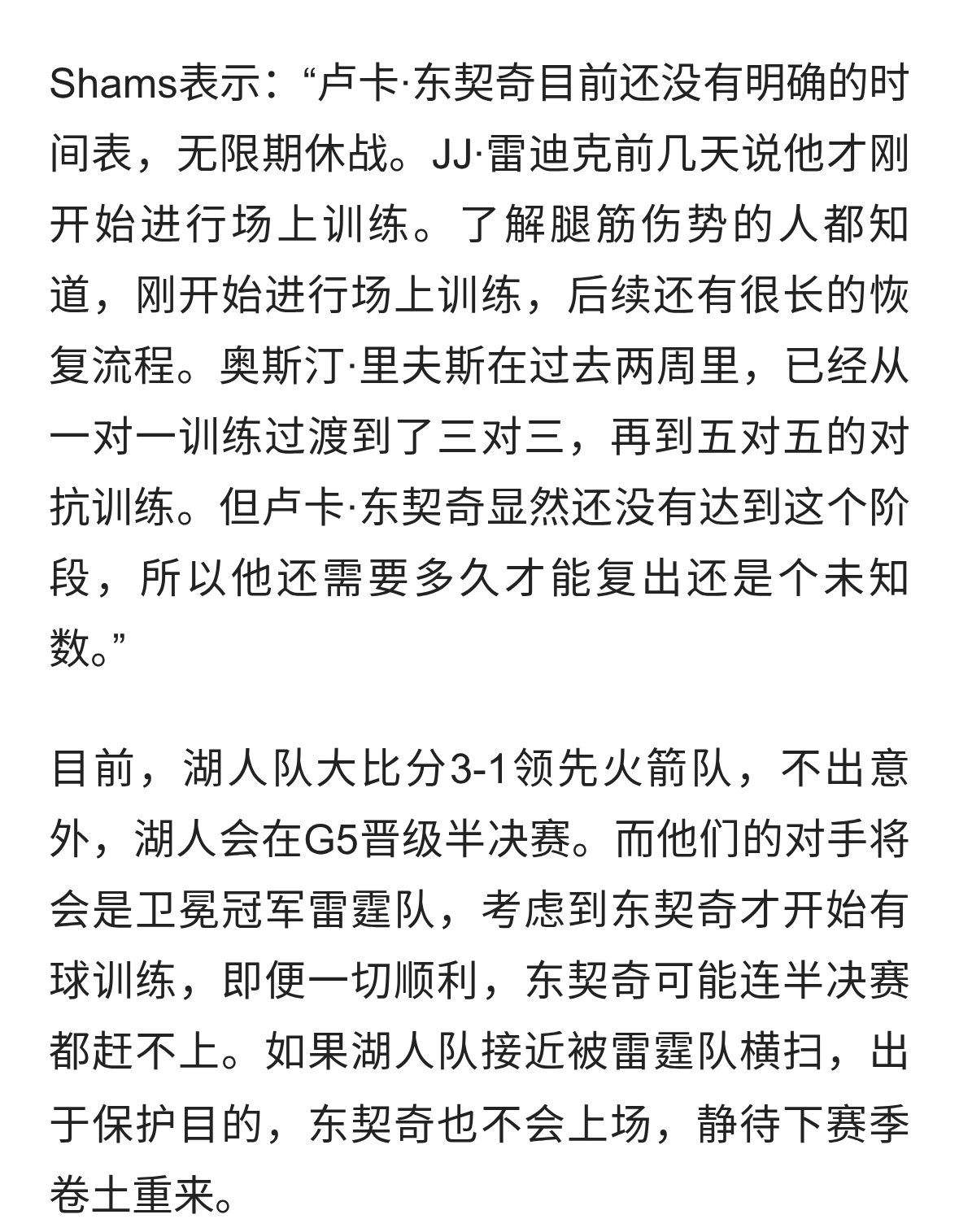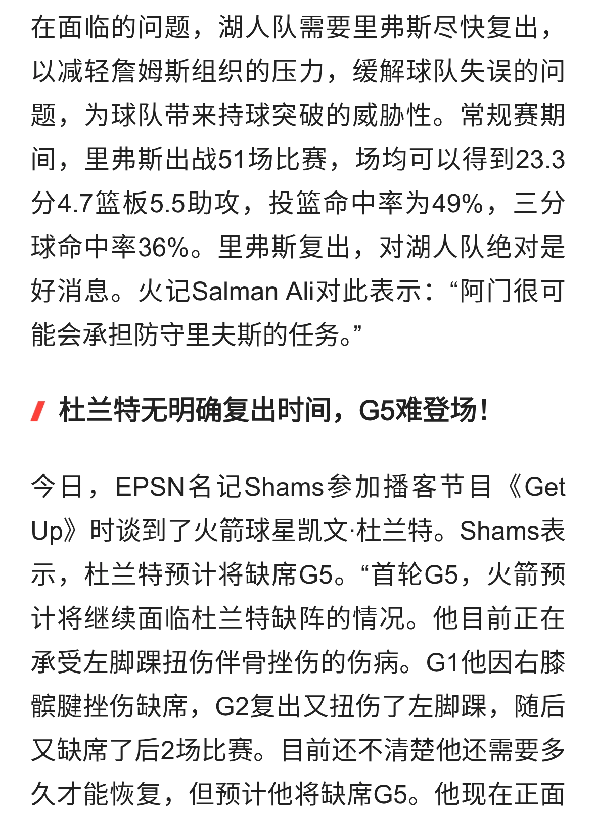 湖人有二个好消息来了,一个是里弗斯其实已经恢复健康了,可以在第五场出战,据雷迪克