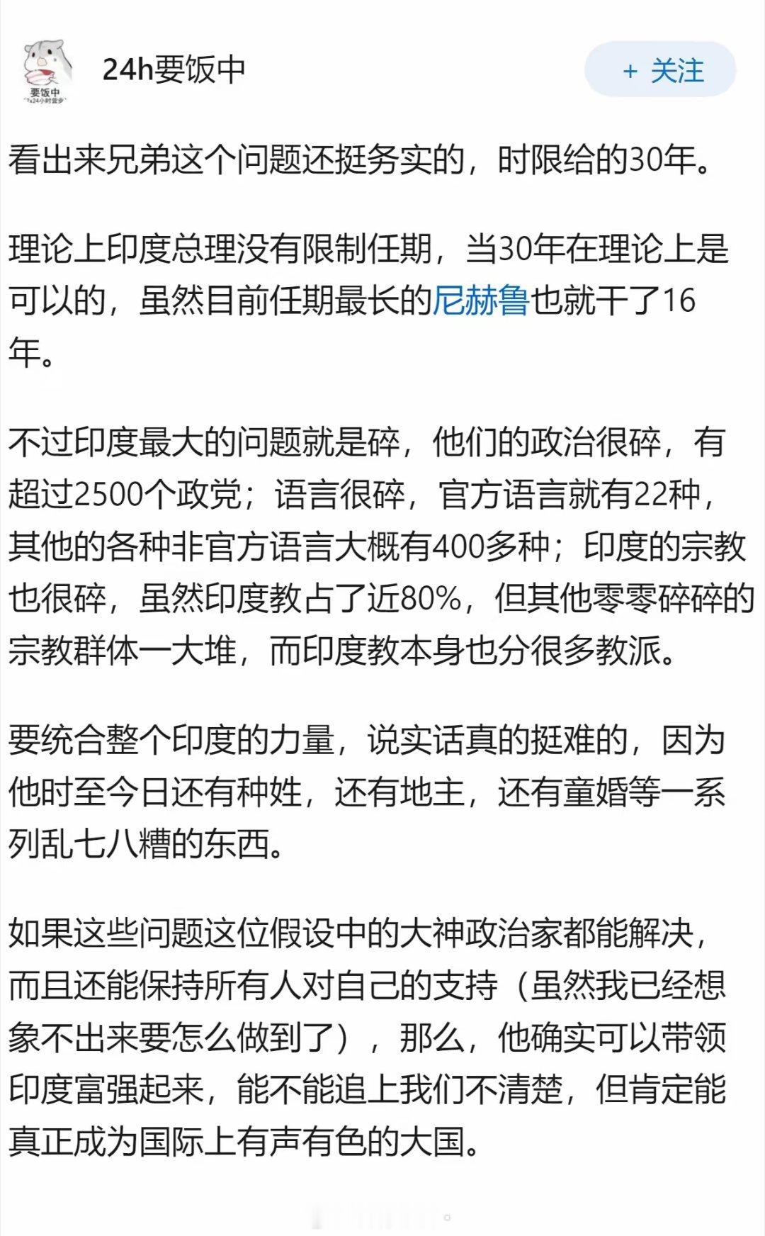 如果印度出现了一位大神级政治家,并掌握了最高权力,他有可能让印度脱胎换骨、在三十年内追上我们吗?