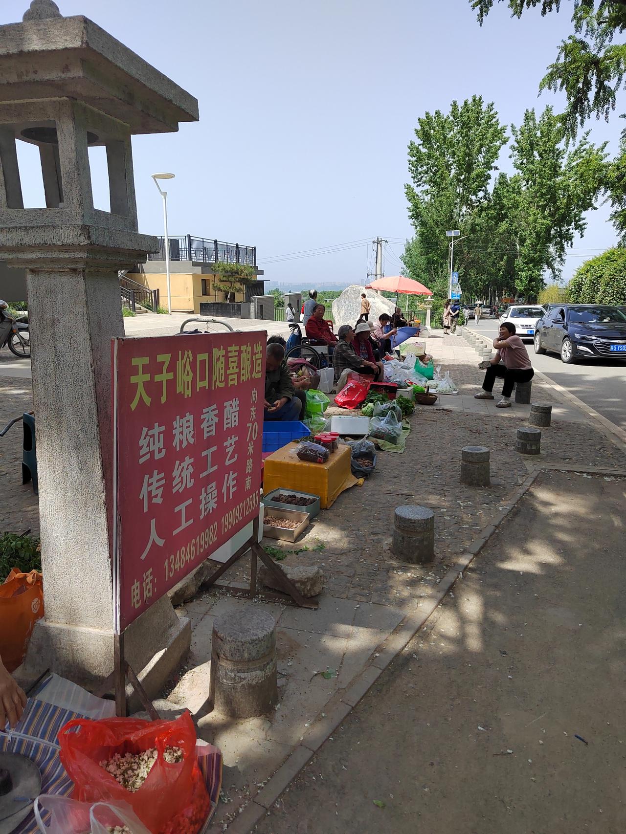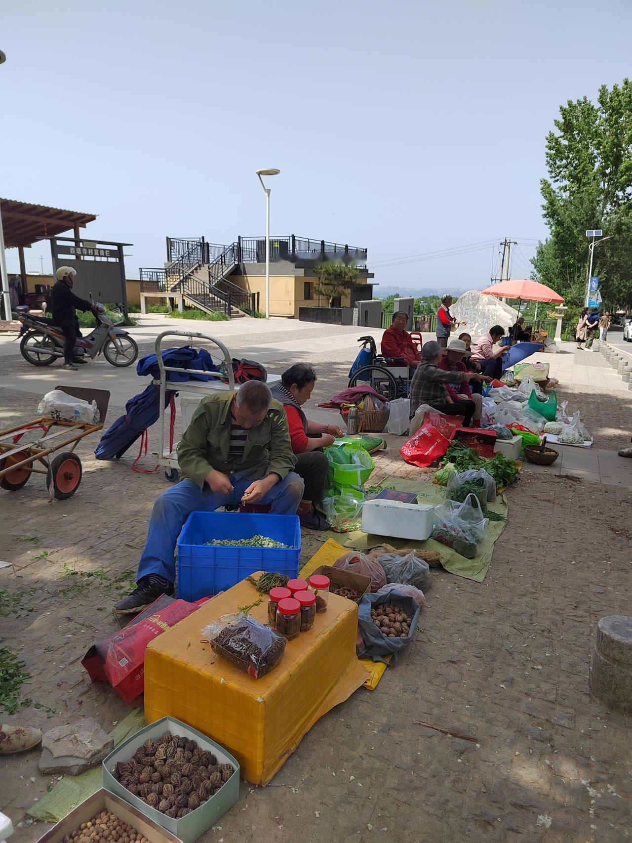 往年来过这里,就是孤零零的一座寺庙一棵银杏树,现在已经很有旅游景点的意思了,广场上是摆摊卖农副产品村民,现在是槐花为主。