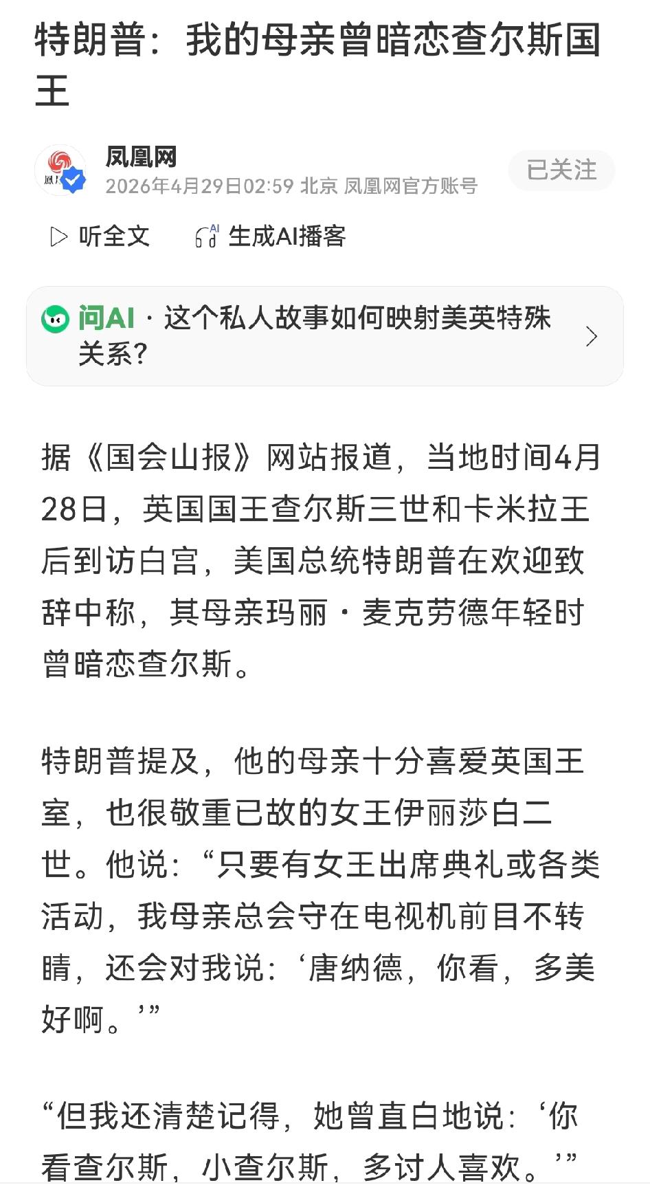 特朗普爆猛料,老妈年轻时暗恋过查尔斯国王