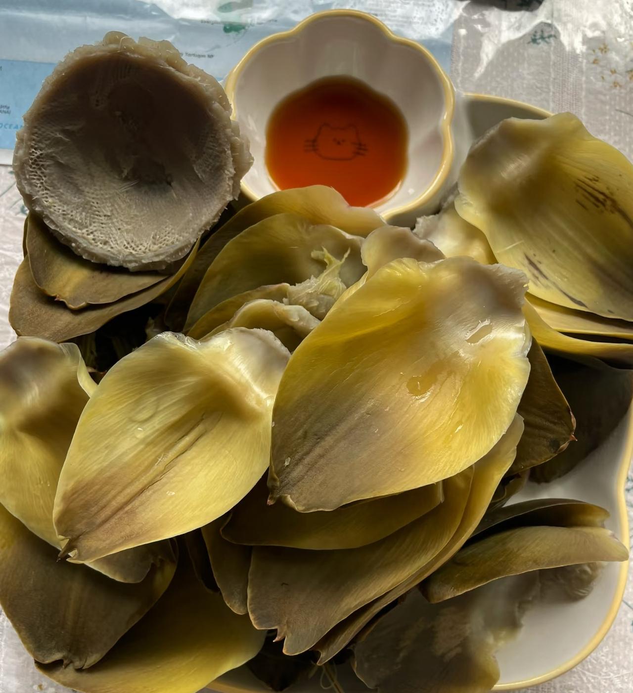 我见都没有见过,他教我方法,说直接上锅蒸30分钟就行,然后就搞点酱料吃那个心就可以了。