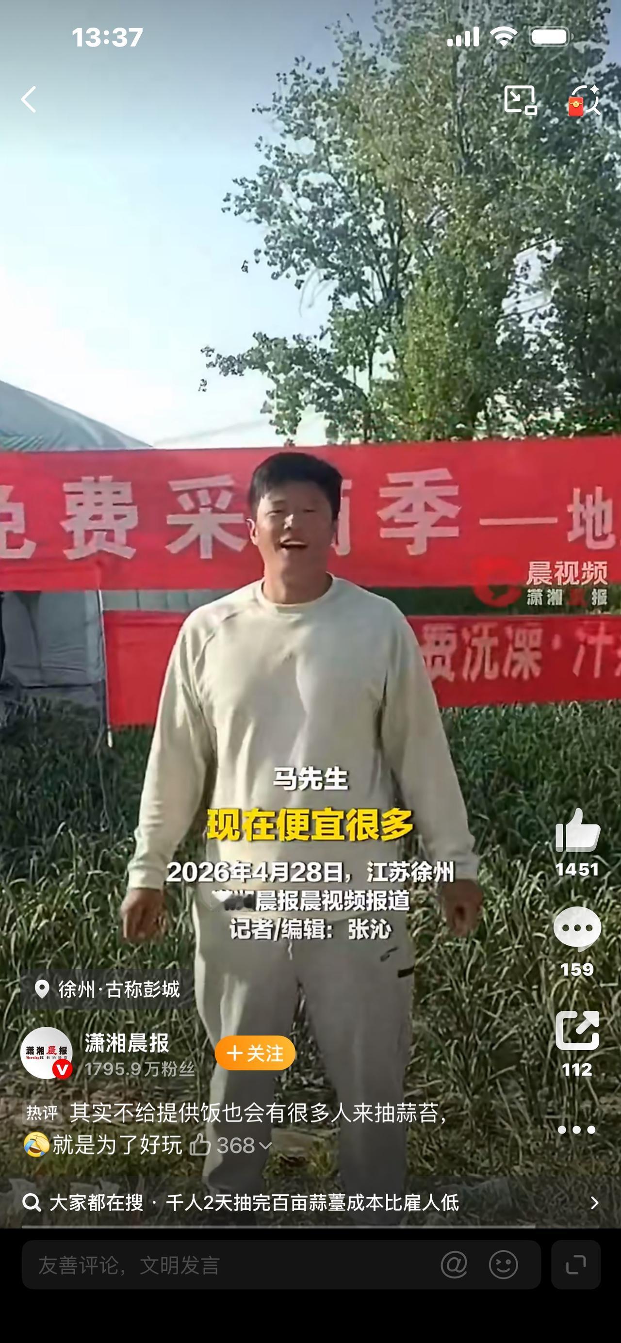 家人们,最近全网都在热议一件大好事!江苏徐州百亩蒜薹,竟然被近千人两天就全部抽完了,场面特别热闹,看完让人又感动又感慨!