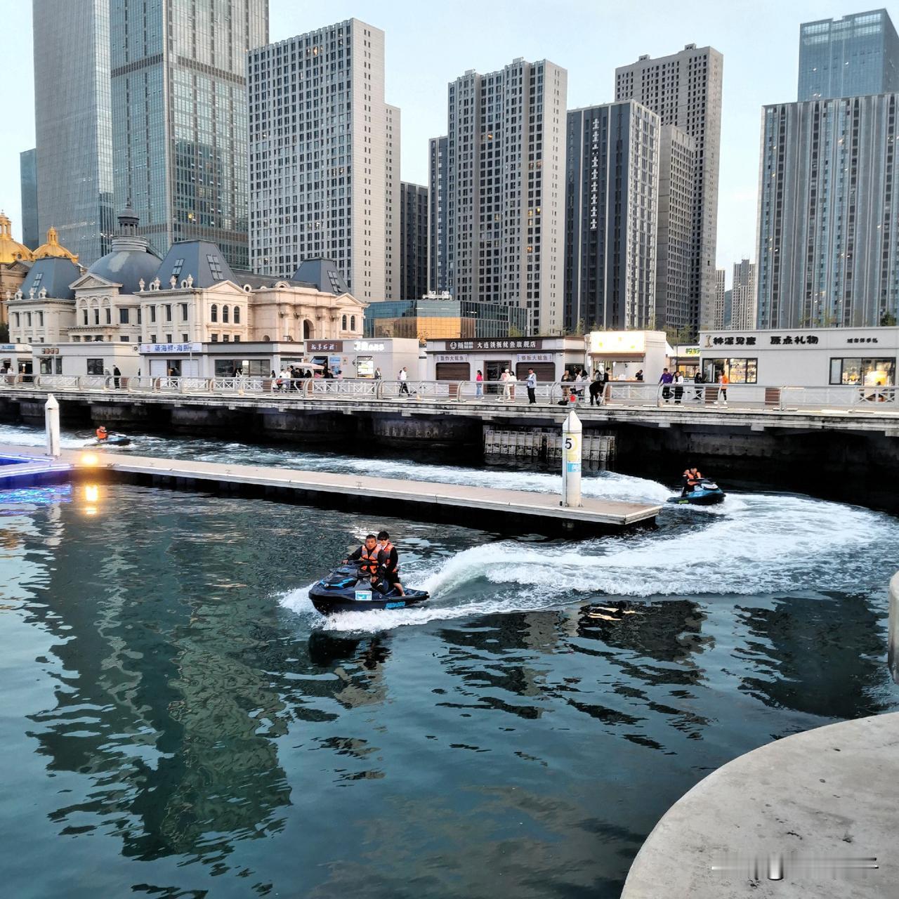 不过提示一下,现在东港可漂亮了,碧水蓝天,海边是木栈道,可以坐游艇 喂海鸥 看大船,木栈道的对过,晚樱正在盛开,走在这条数百米樱花大路上,犹如进入了桃花园。