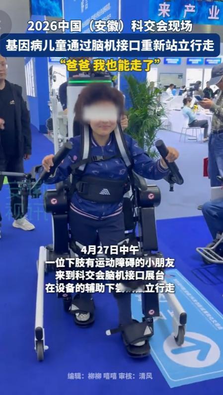 2026年4月27日,中国安徽科教会现场,一个身患基因病、常年与轮椅相伴的小朋友,就用这套技术,迈出了人生中极具意义的几步。