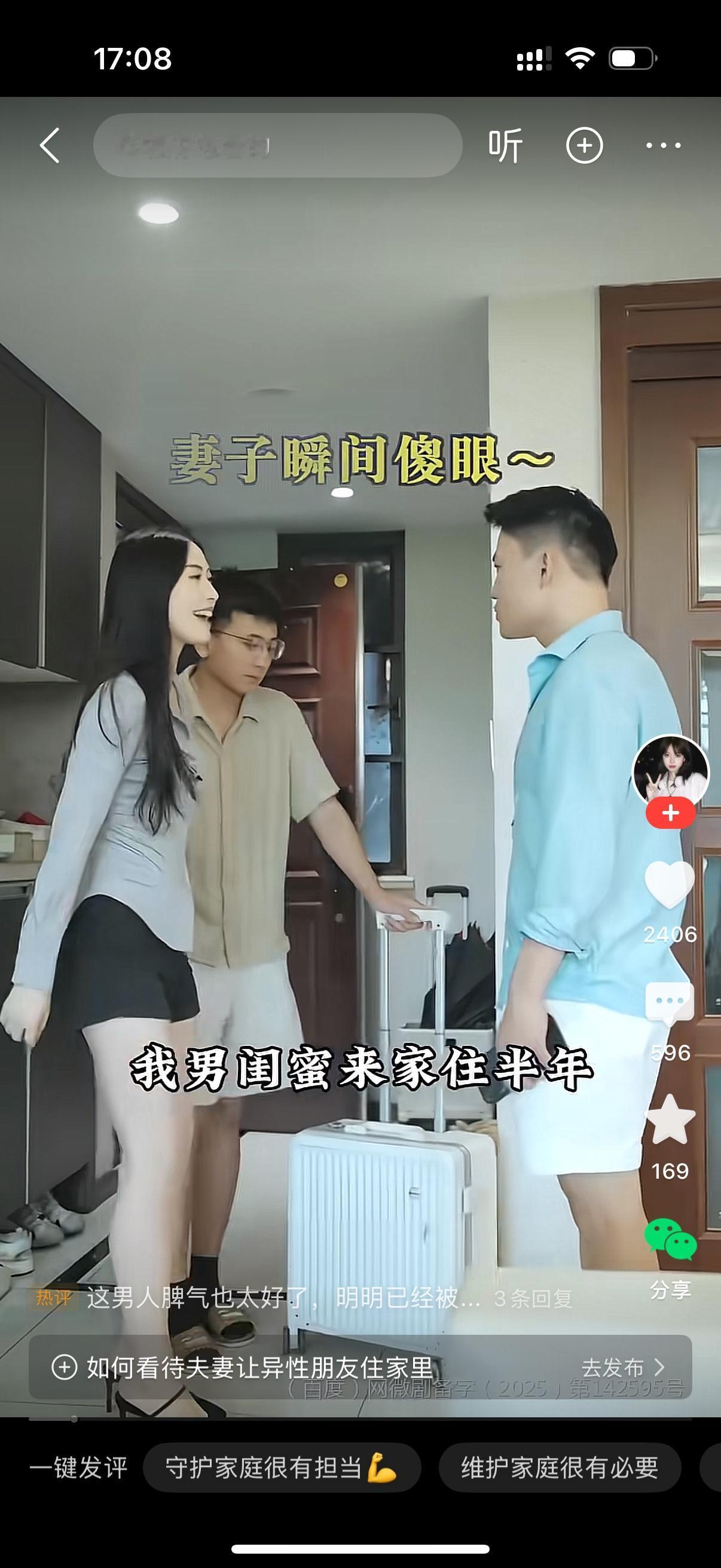 女人把男闺蜜带回家里,对丈夫说,老公,我男闺蜜到我家住上半年。男人呵斥她,你是有