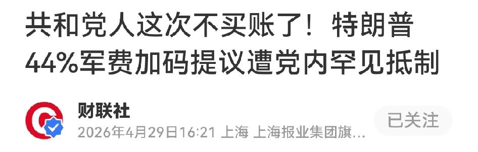 特朗普要涨44%军费,自家共和党带头反对。这事看着热闹,细想一下,反而让人不是滋味。