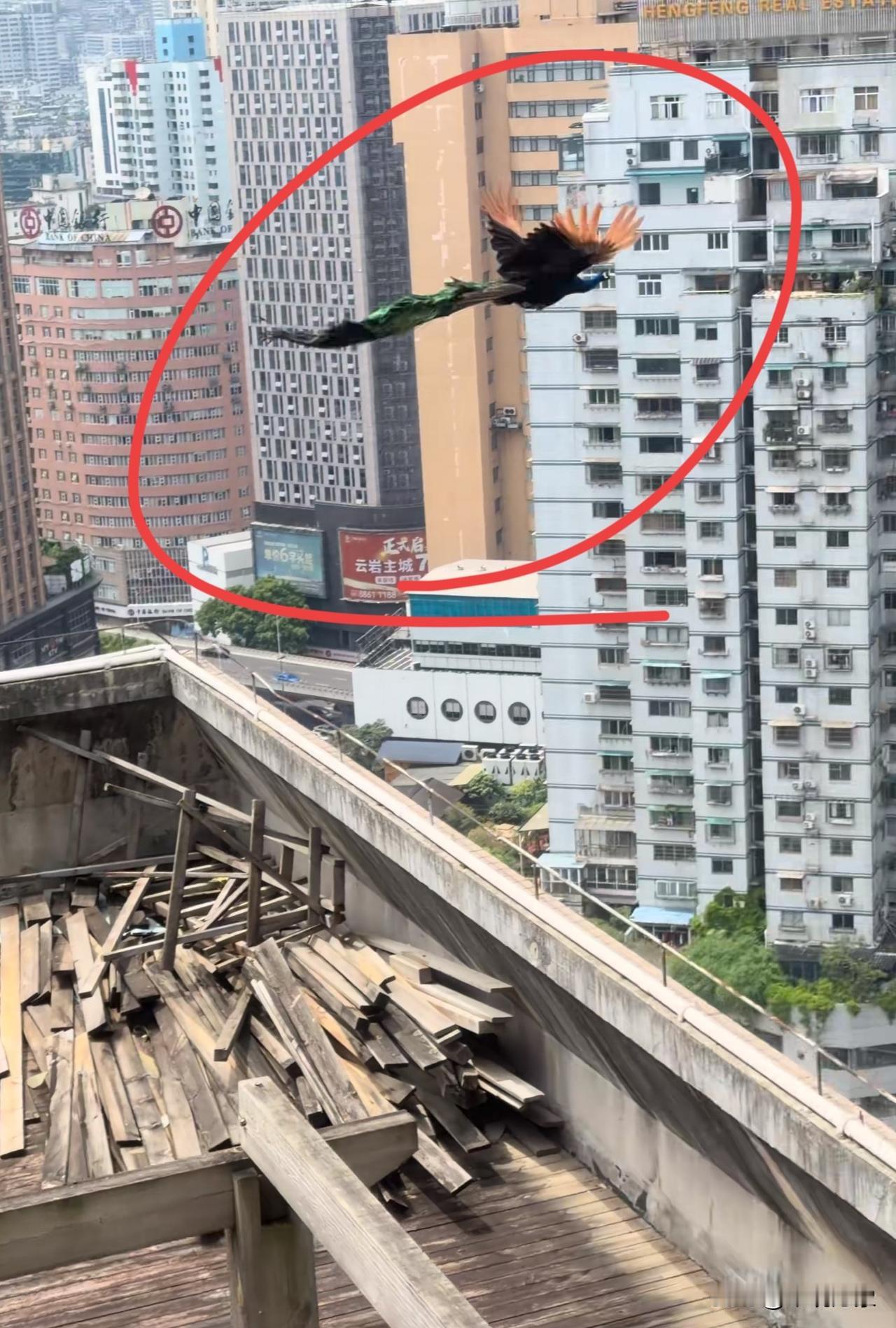 没想到在家也能看到孔雀 ,而且是第一次见到飞这么远的孔雀贵阳 高层住户