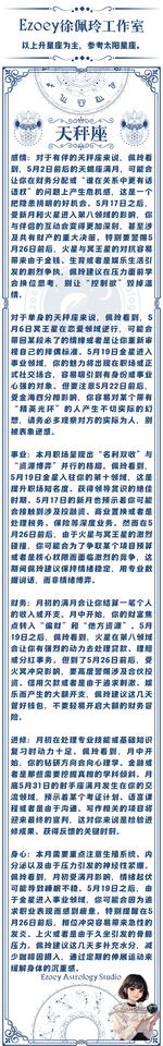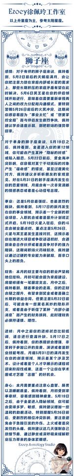 【5月星座月运】5月十二星座月运详解—Ezoey徐佩玲26年月运