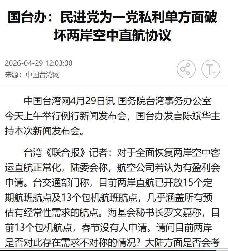 自己亲手把两岸直航61个航点砍到只剩15个,转头就装聋作哑不认账,而他说这话的同一天,国台办就甩出白纸黑字的铁证,把他的谎话撕得一干二净!
