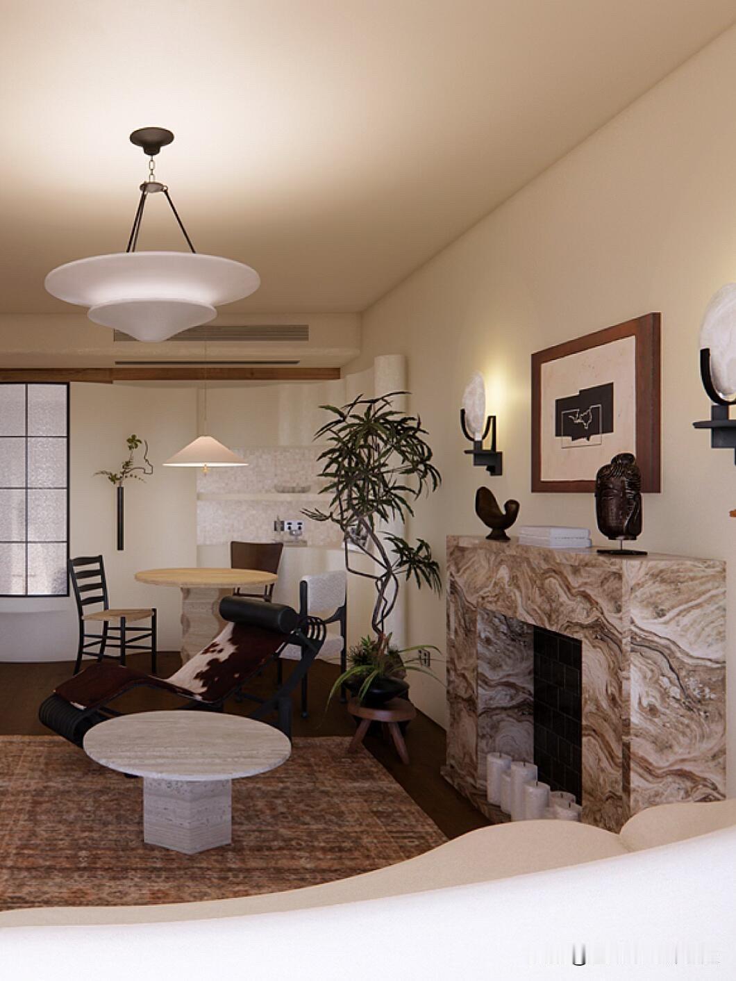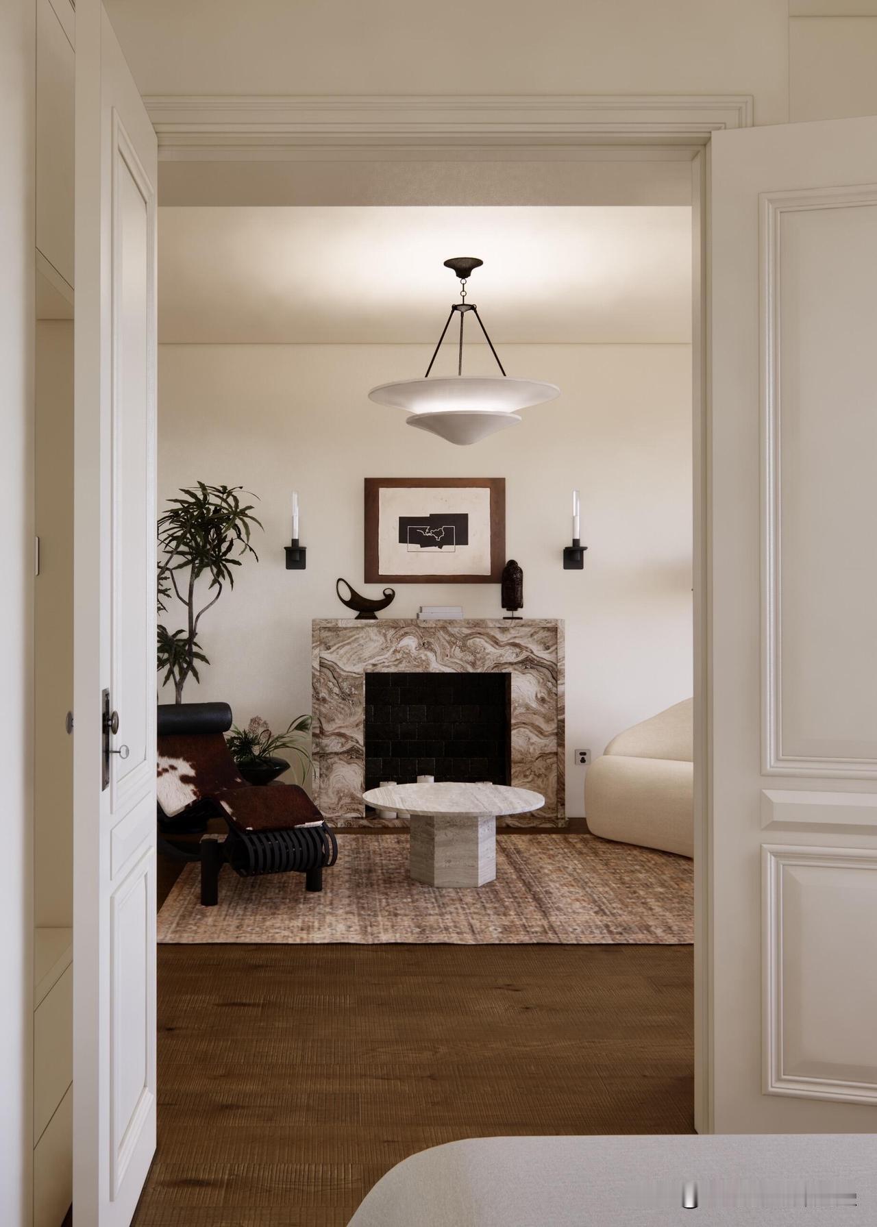 ▫️水墨纹奢石壁炉:天然石材纹理,成为客厅灵魂视觉焦点