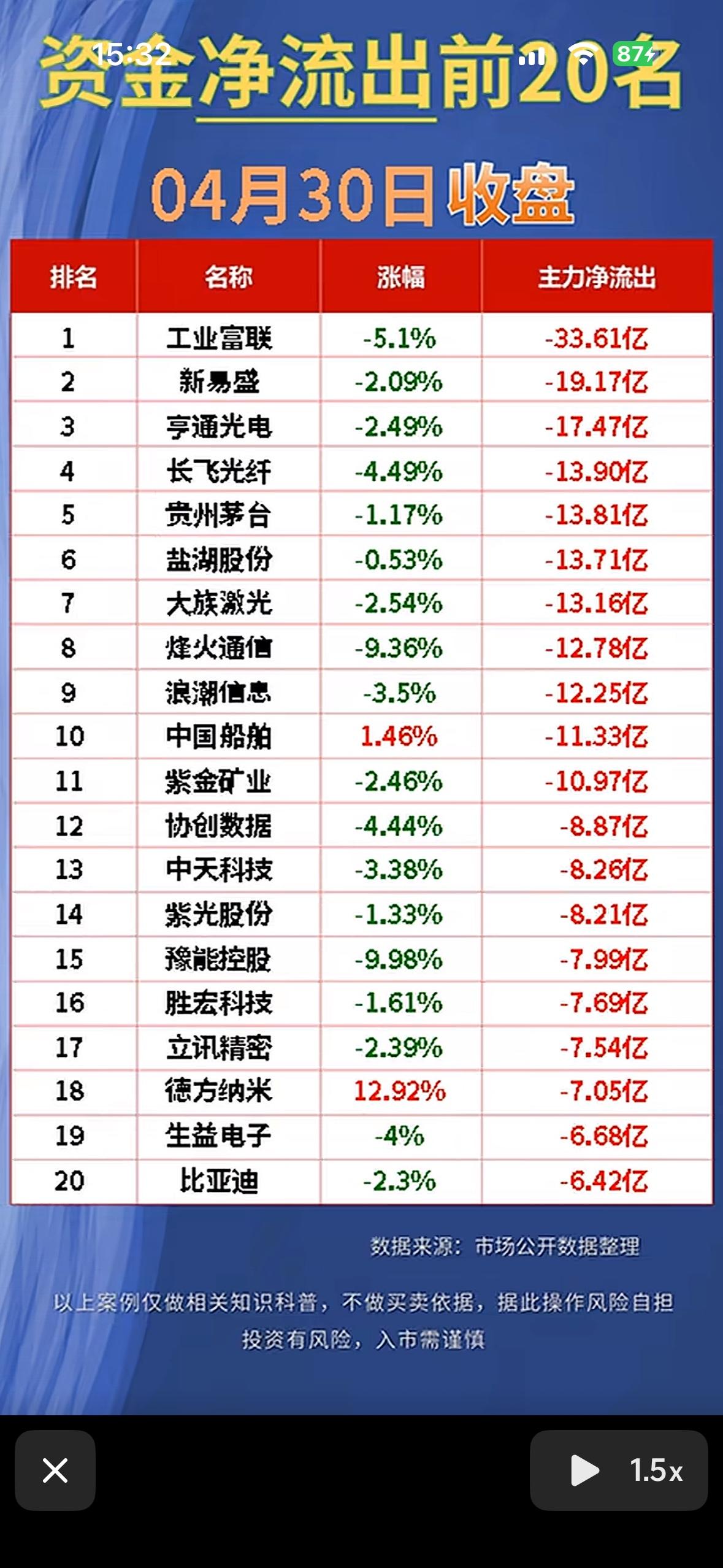 “4月30日主力净流出与净流入前20名,资金动向大揭秘!”💰📈📉