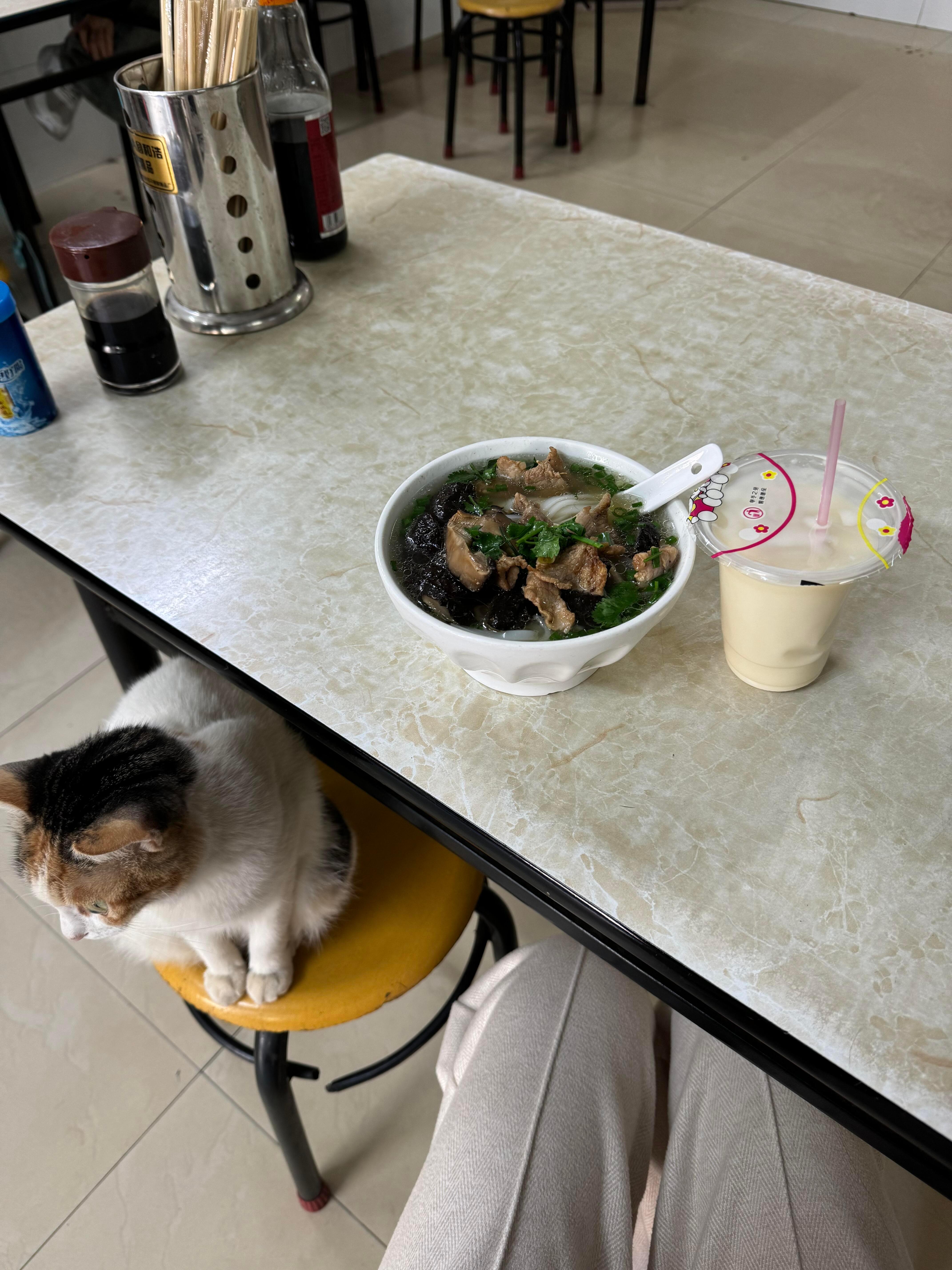 早晨在饭店吃早点,一只小流浪狗畏畏缩缩的来到饭店门口想讨点吃的,被饭店老板一棍子