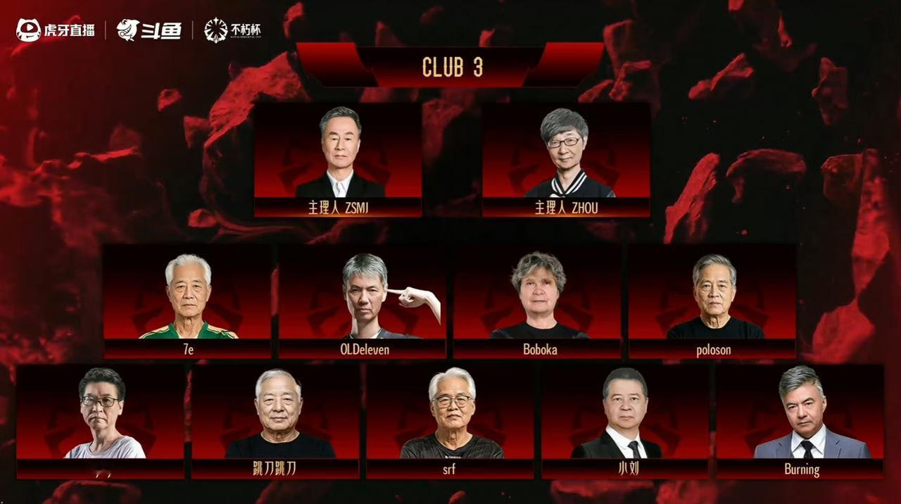 第二届老头杯今天晚上选人已经结束,四个俱乐部,每个俱乐部两位主理人,然后挑选9位选手,总共十一位选手,分两队参加比赛。