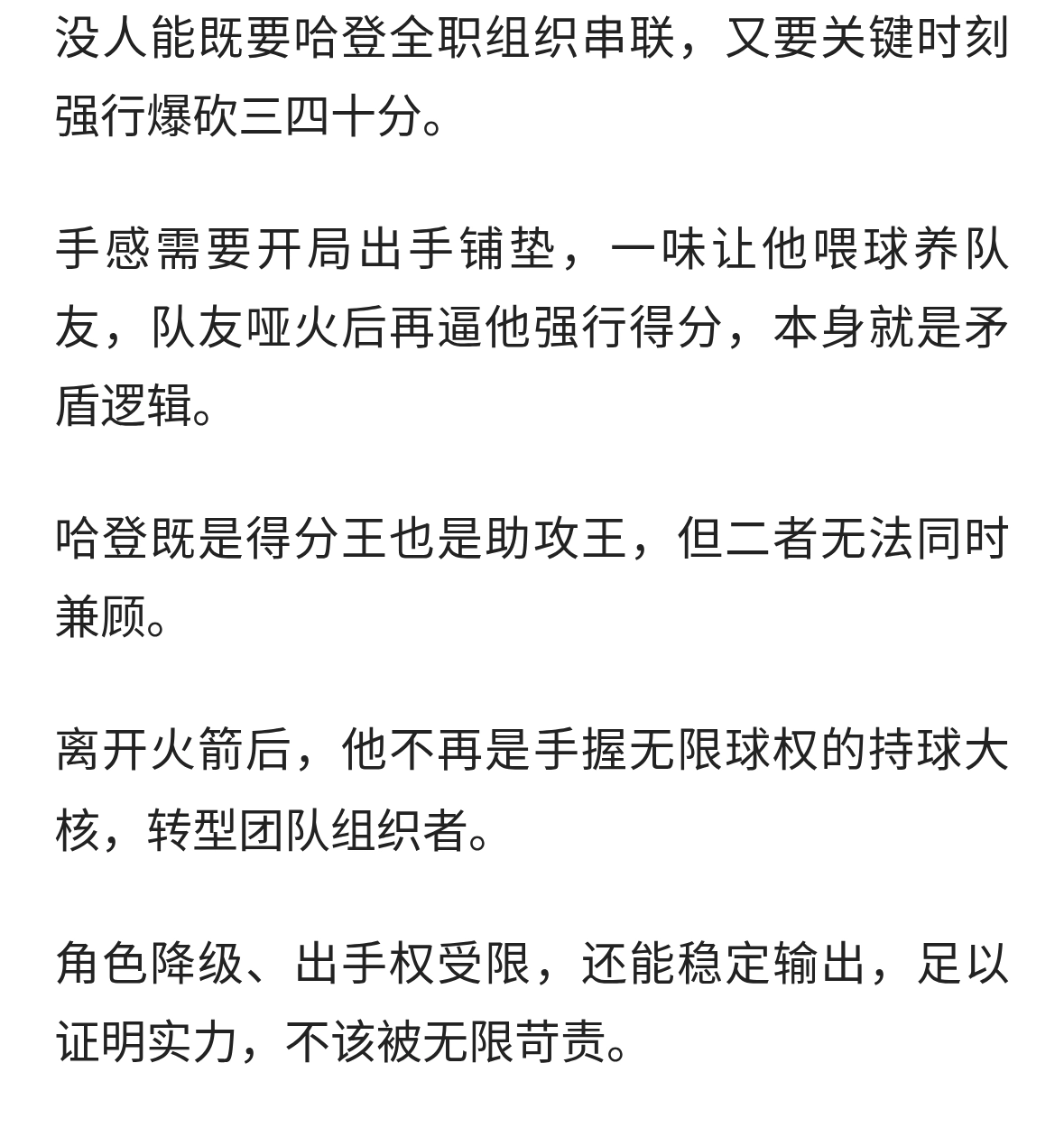 别再双标苛责哈登!角色早已变更,两全要求本就不现实
