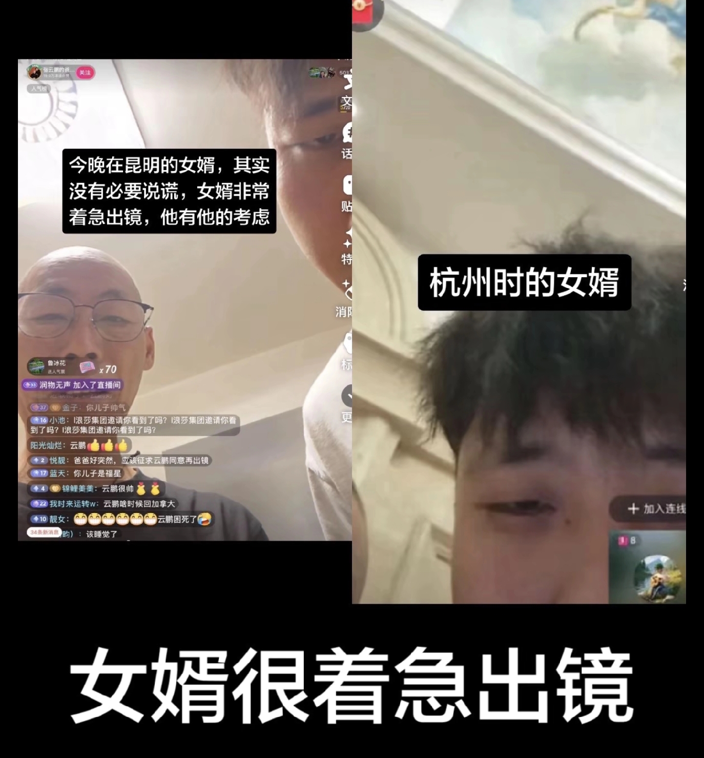 昨天有一位网友发现,最近一直和云鹏他们一起同行的一人有网友说是云鹏继母女婿,而且曾在上次云鹏爸爸带货杨奶奶家纺时就出现过