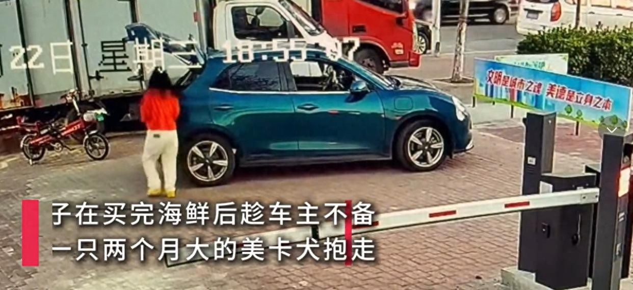 一名男子在路边摆摊卖海鲜,将自己名贵的宠物犬放在面包车后备箱里,结果一名女子来买完海鲜后,不给钱不说,还直接将他价值1.28万元的狗狗抱走了。
