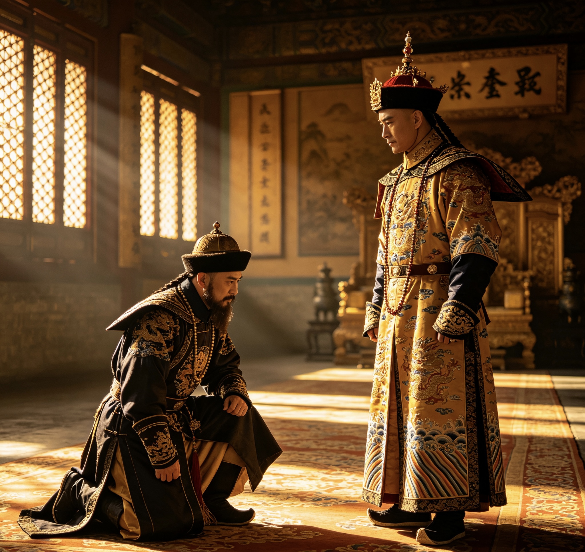 等到入关迁都北京以后,为了低成本统一天下,所以清朝的策略是大力拉拢前明文武官员,通过这种方式快速开疆拓土,是以吴三桂这个关键降臣被树立了至关重要的标杆作用,因此清廷玩了一个小心眼,先是确定他是郡王爵位,然后再将他晋为亲王爵位,以此来拉拢吴三桂。
