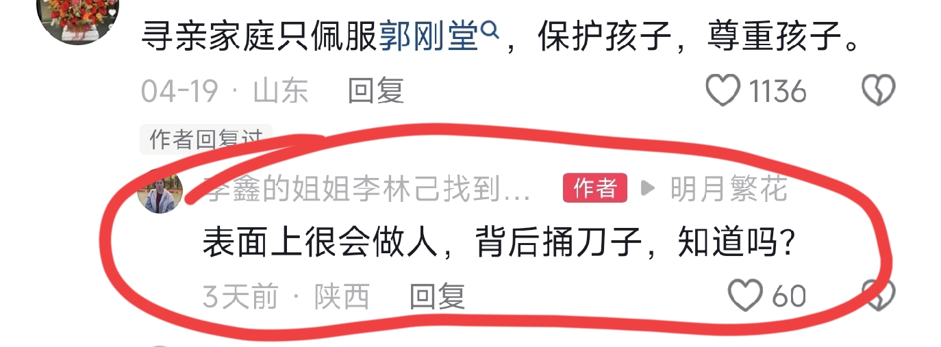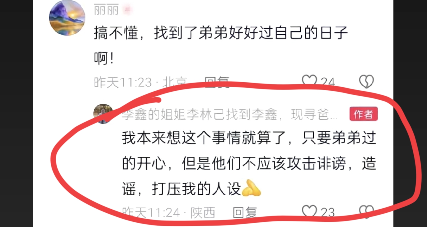 李鑫养家姐不忍了!她呼吁寻亲圈出规则