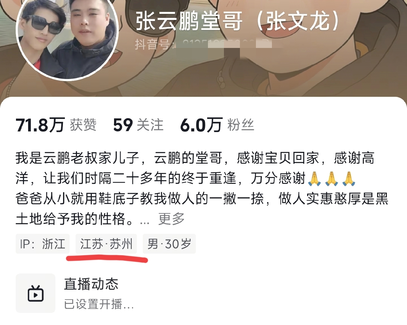张云鹏堂哥昨天晚上直播时就说要办一件大事,而且云鹏堂哥账号ip也显示了江苏苏州,可见网友们猜测的应该是对的