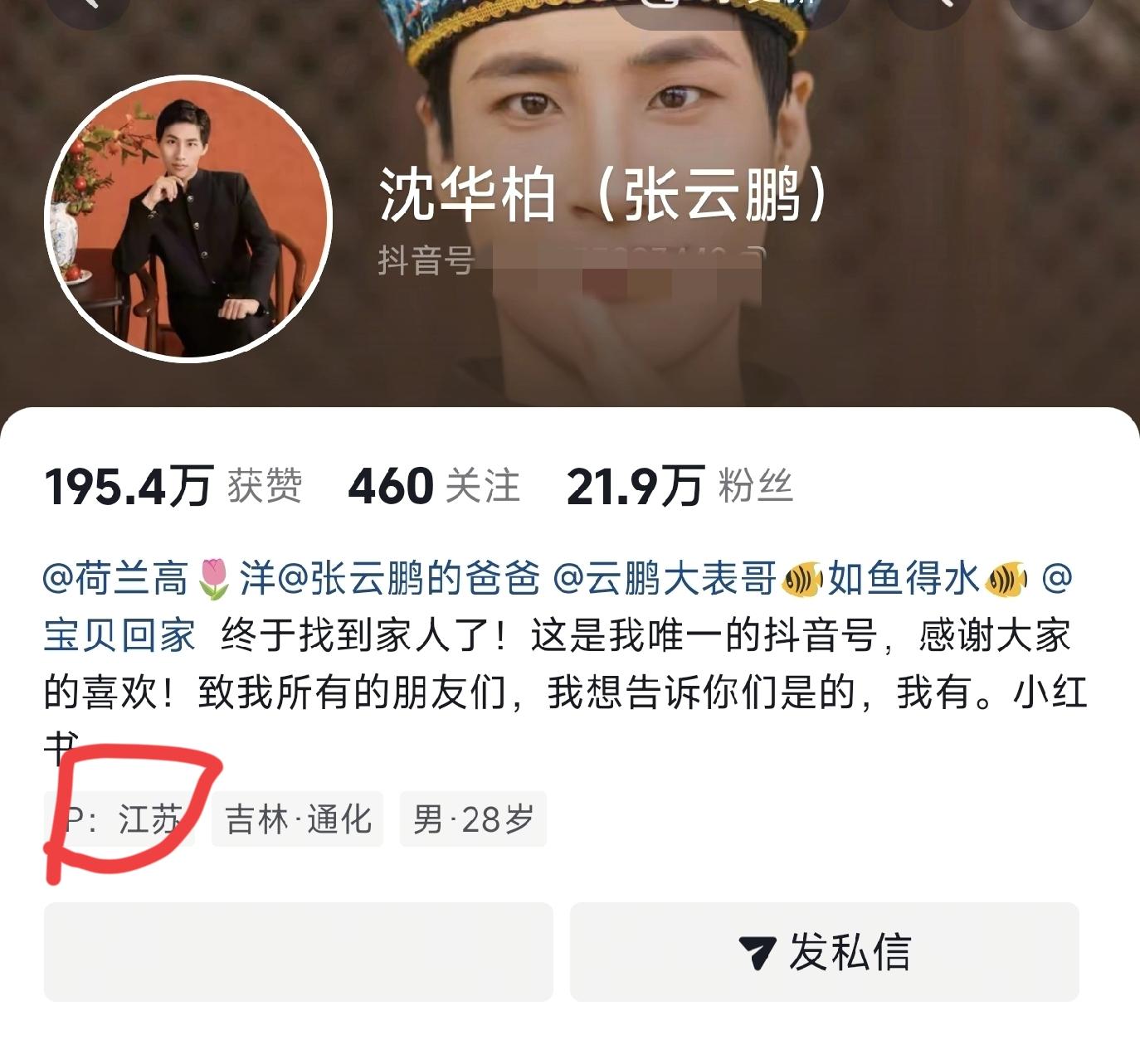 今天有细心的网友发现张云鹏他的账号ip显示江苏了,因为大家都知道张云鹏当初回家认亲时和妈妈是在江苏苏州见的面,所以很多人认为张云鹏应该是去江苏看望妈妈他了