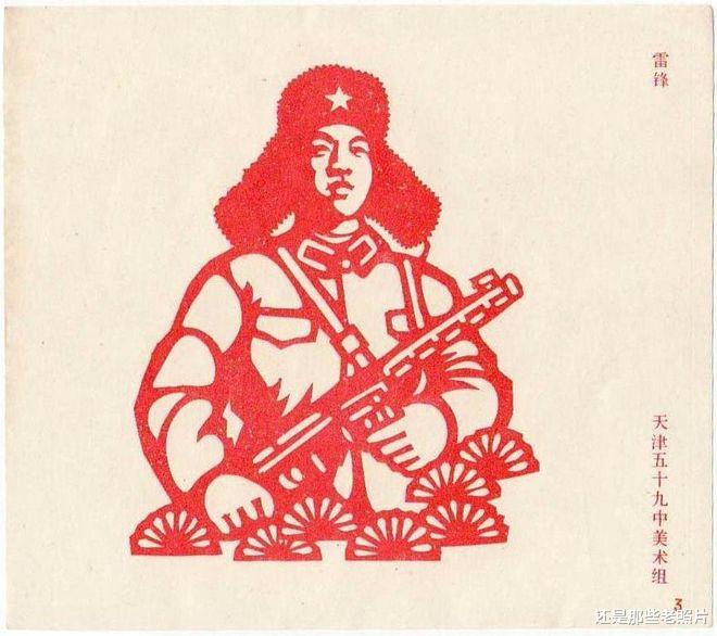 雷锋的经典军人形象:头戴缀有五角星的棉帽、身着军装、手持钢枪,神情坚毅,还原了雷锋作为解放军战士的英武风貌。天津五十九中美术组 作