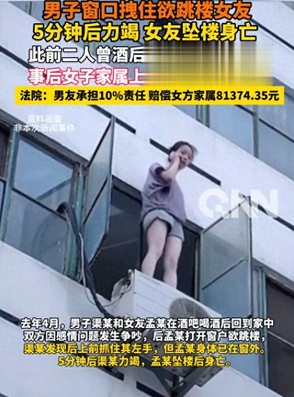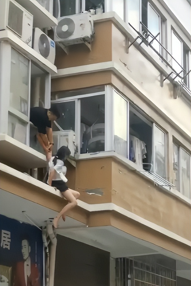 屋里的刘先生一看女朋友翻出去了,酒一下子就醒了大半,他疯了一样冲到窗边,不停地劝她,让她赶紧回来别冲动。